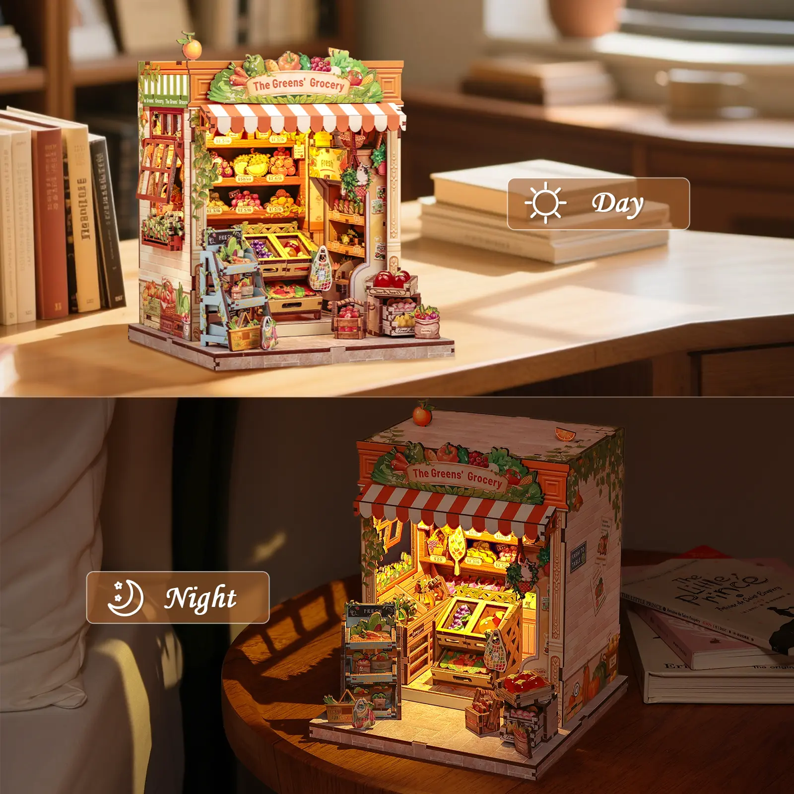 Fun DIY Craft with Display Versatility - Every detail has been carefully designed. Elegant home decor inside the bookshelf or on the desk. Looks great in the dark with the light on. The DIY book nook 3D wooden puzzle dollhouse kit is more than a DIY book corner project, also an exquisite collection and room decoration.
