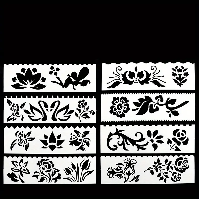 8pcs DIY sewing tools Painting template Slender Strip generation 8 sets of pattern painting template Hand-drawn cartoon painting template ruler giy painting sewing AIDS flower pattern