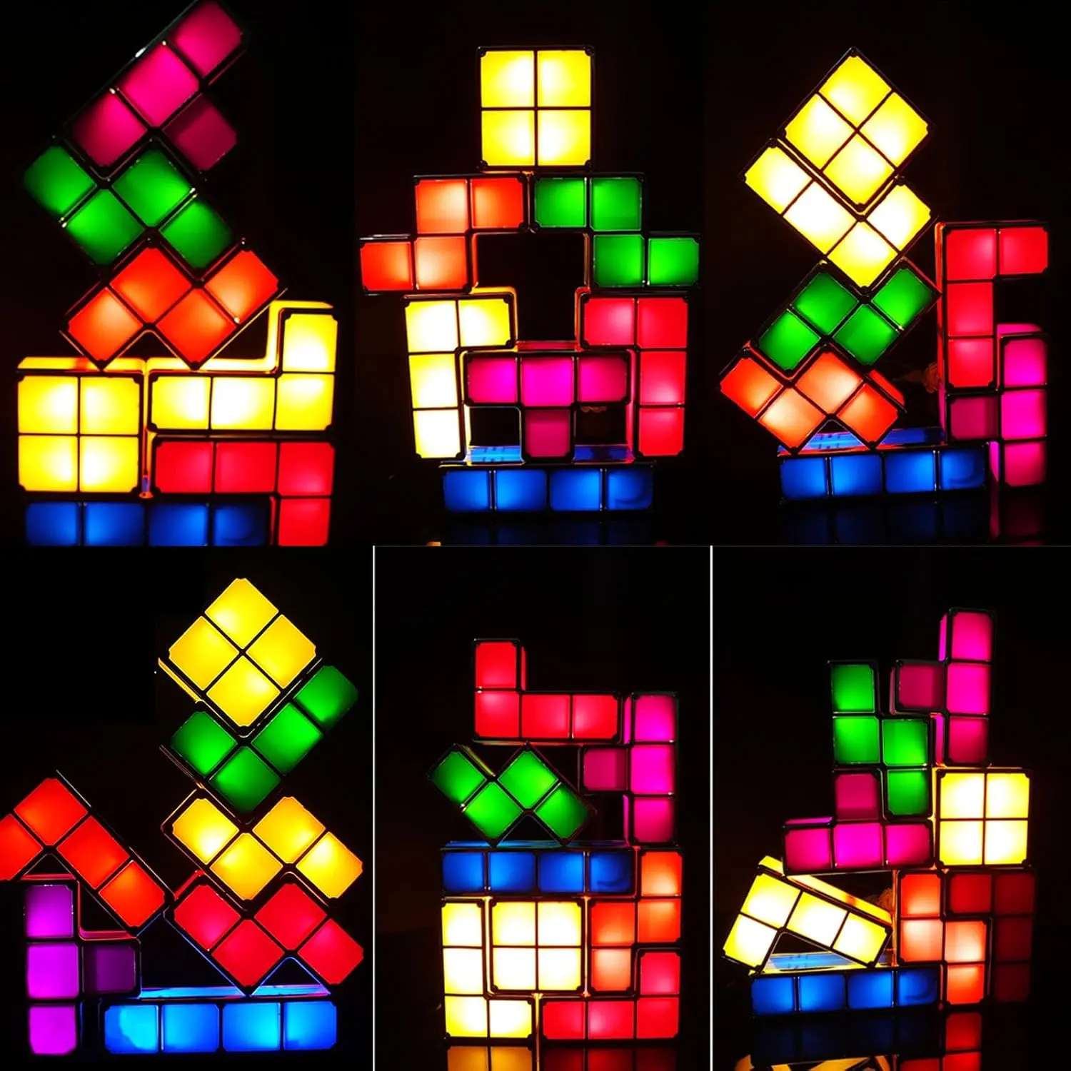 Classic Night Lights: decades old classic design nightlights,Seven 7 color -themed LED stackable novel night lights,seven- interlocking luminaires,gamer decor ,cool gifts for gamer ,teen boy room decor,novelty decorative nightlight,The LED lights up when the night light parts are stacked together; the lights go out when disassembled,Not only LED night lights, but also a beloved puzzle retro gifts.