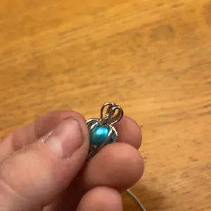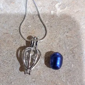 Great blue/aqua pearl but silver "coating" on necklace wore off in less than two weeks.