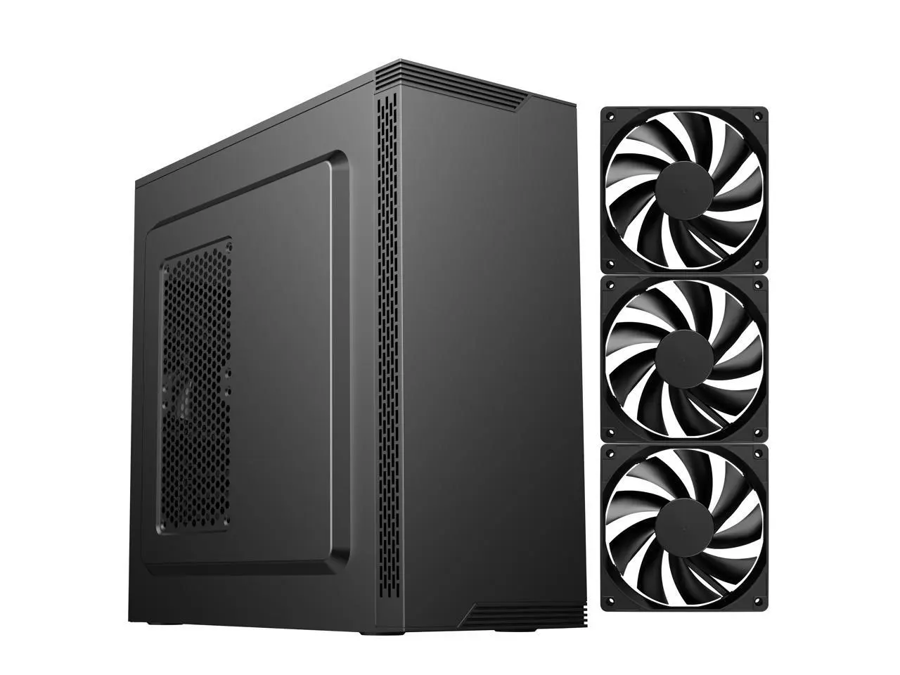 DIYPC DIY-S05-BK Black USB3.0 Steel ATX Mid Tower Computer Case, 3 x120mm Black Fan (2 x front, 1x Rear Pre-Installed)