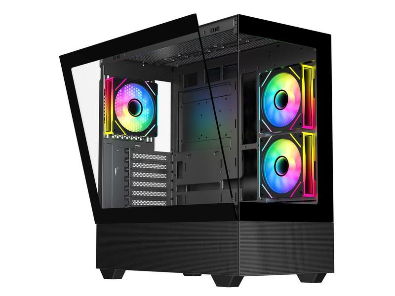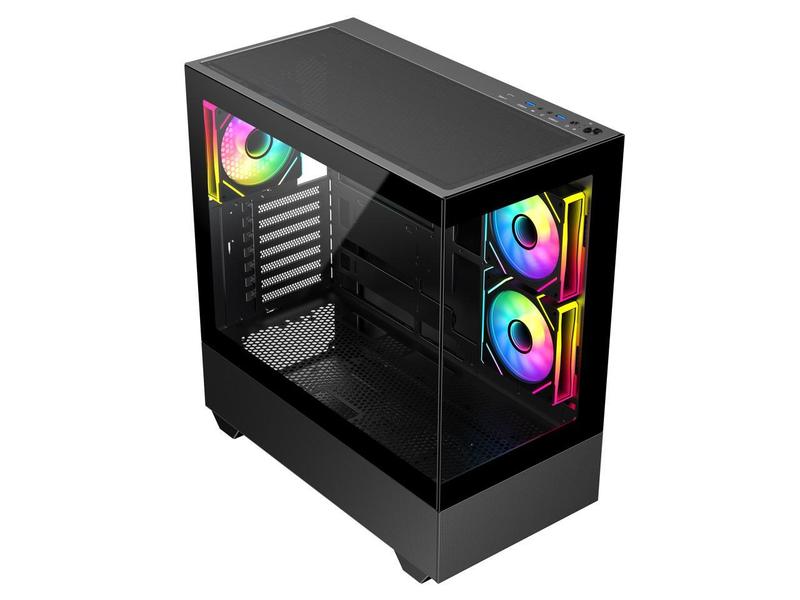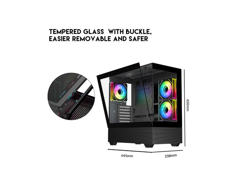 DIYPC ARGB-N5-BK Black USB3.0 / Type C ATX Mid Tower Gaming Computer Case w/2 x Tempered Glass Side Panel and 3 x ARGB PWM Fans Pre-Installed, Support BTF Back Plug MB