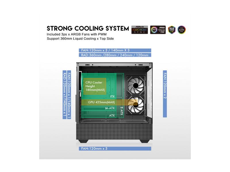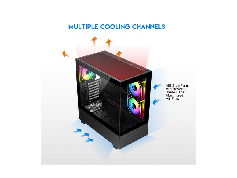 5. DIYPC ARGB-N5-BK Black USB3.0 / Type C ATX Mid Tower Gaming Computer Case w/2 x Tempered Glass Side Panel and 3 x ARGB PWM Fans Pre-Installed, Support BTF Back Plug MB