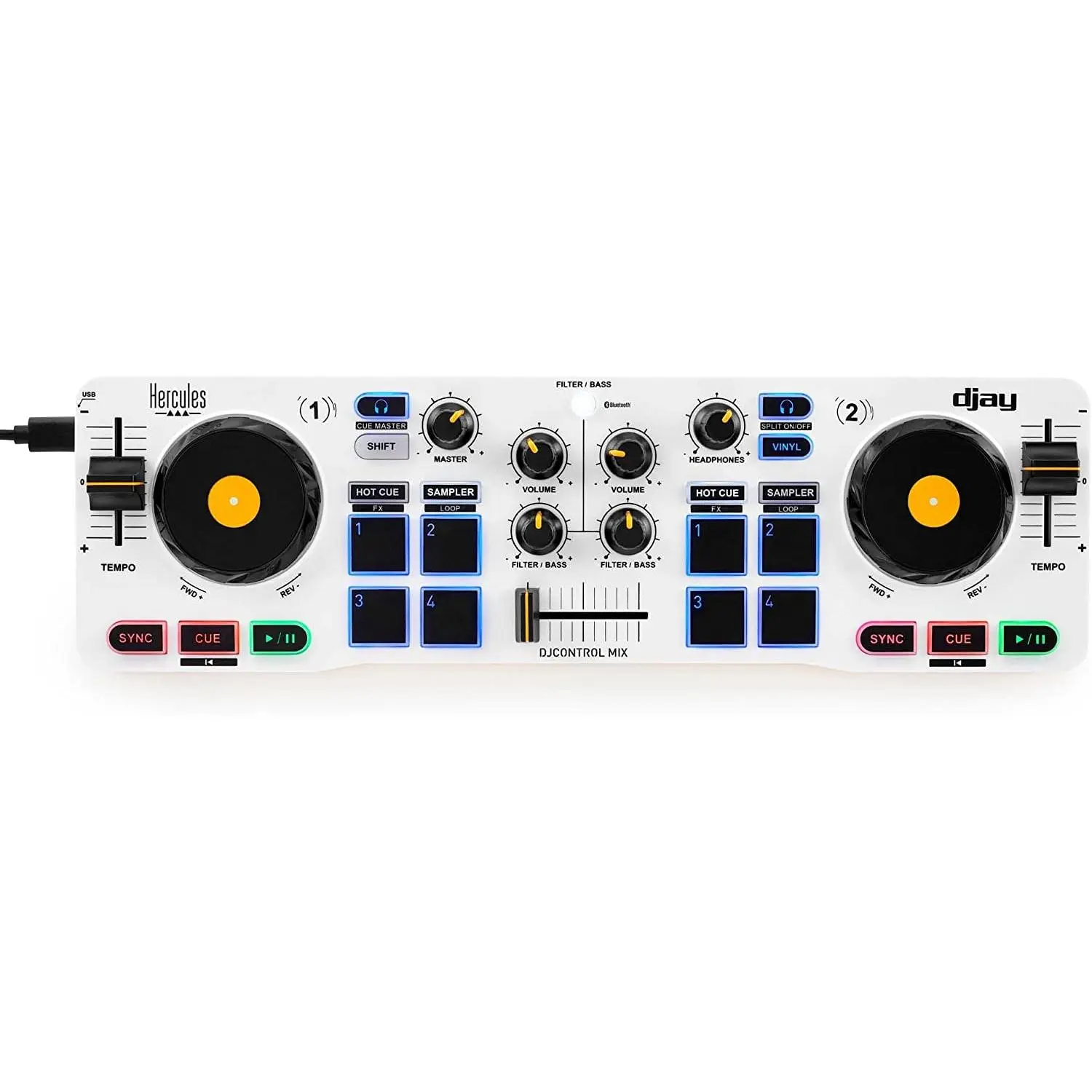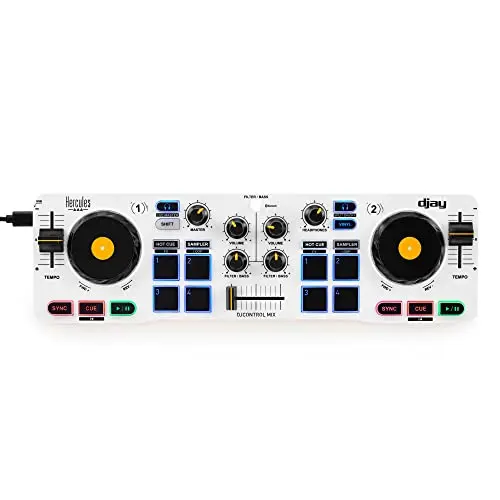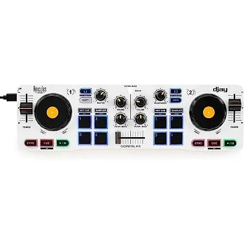 Hercules DJControl Mix – Bluetooth Wireless DJ Controller for Smartphones (iOS and Android) – dJay app – 2 Decks, White