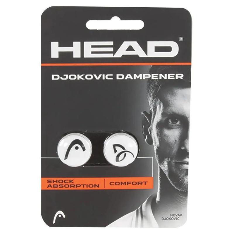 This HEAD Novak Djokovic Dampener helps reduce string vibration at contact. Each package comes with two dampeners. One side shows the HEAD logo, and the other is Novak's logo.