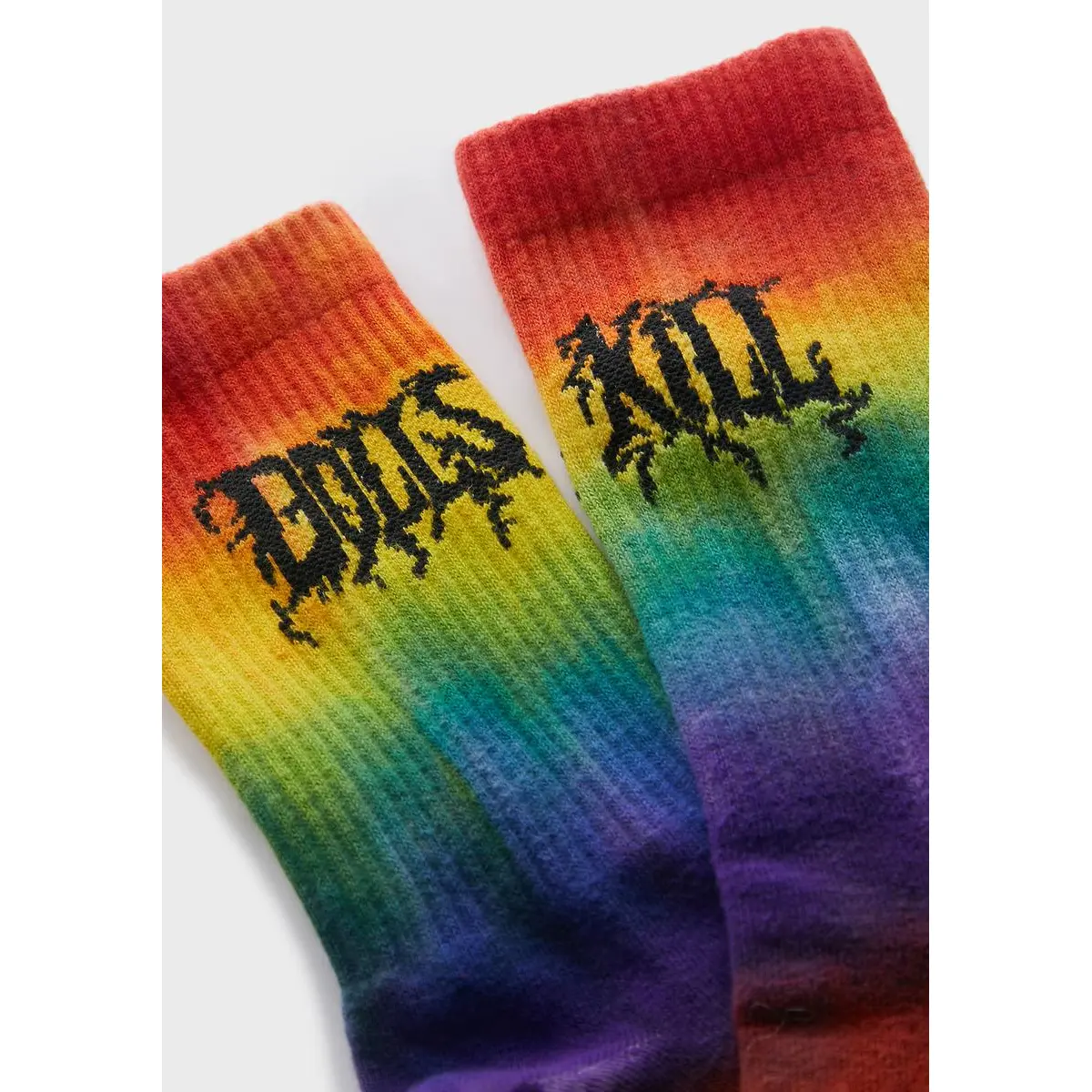 Love these dolls kill branded rainbow 🌈 socks they are comfy and look 👀 really nice 😊 stay snug on your feet so they don’t fall off! Love supporting DK brand💋💕🌈❤️💕