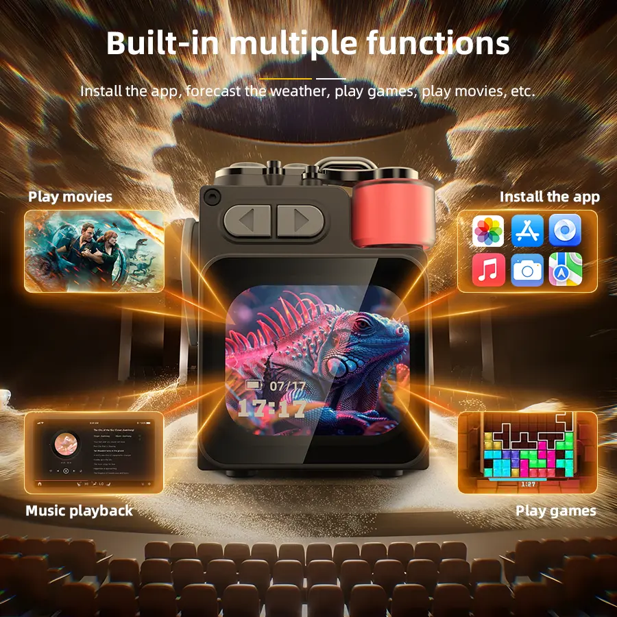 The DK08 Smart Touchscreen Bluetooth Speaker is an ultra-mini portable wireless sound system. It features a touchscreen interface for easy control. Compact and portable, it's ideal for home, office, outdoor use, and smartphone compatibility. A perfect gift for Christmas or birthdays.