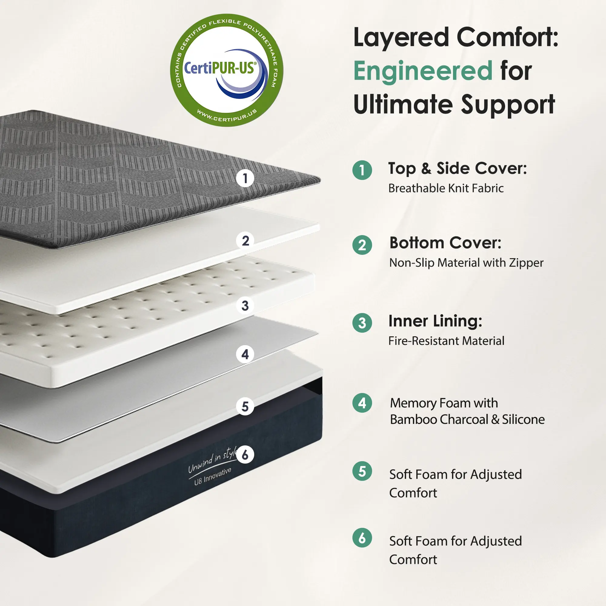·Equipped with a bamboo charcoal & silicone memory foam layer, it is skin - friendly, breathable and has lasting resilience, can precisely support the body and help keep the sleeping environment clean and fresh.
