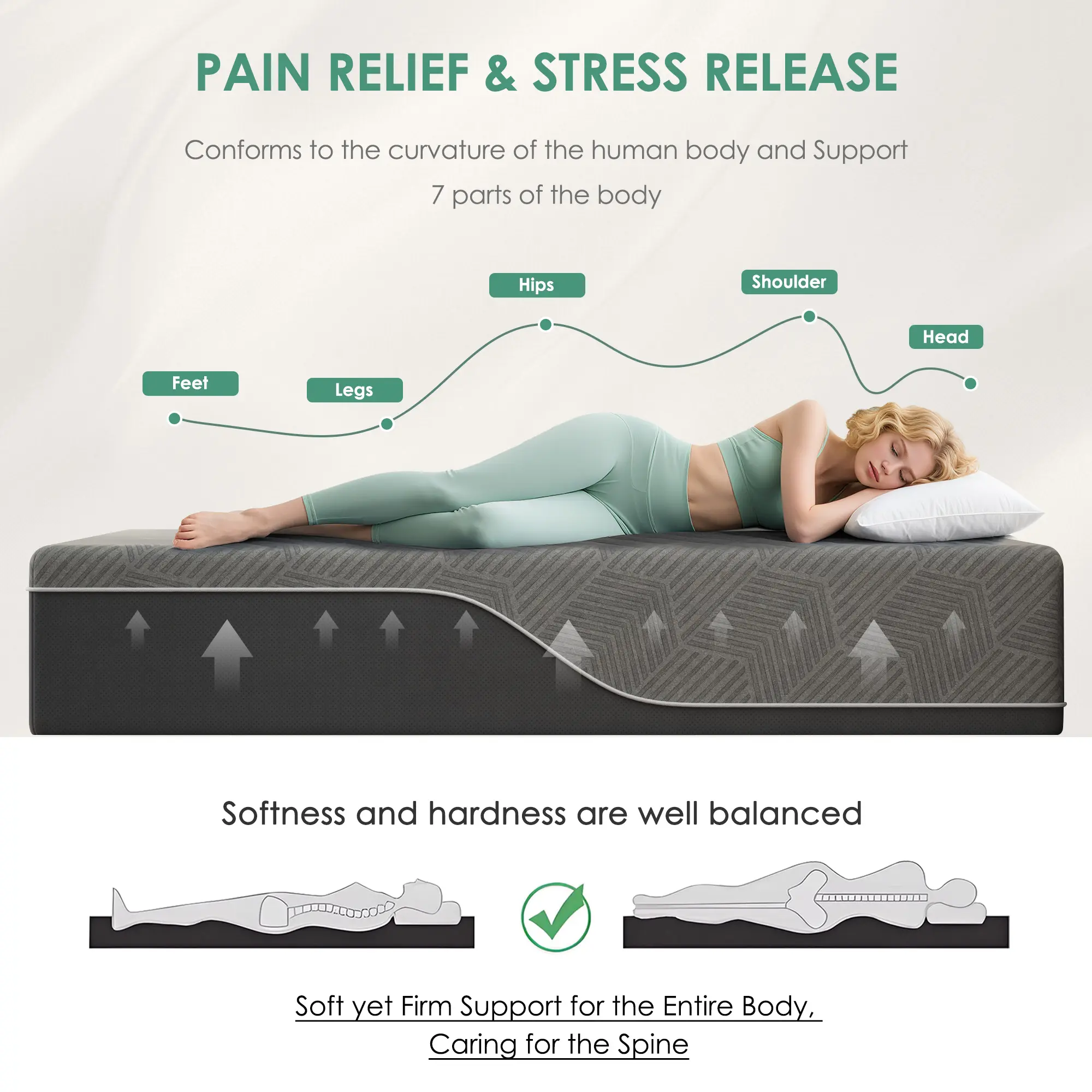 ·It conforms to the curves of 7 major body parts including head, shoulder and hip, balances soft and hard support, cares for the spine, and effectively relieves body pressure and pain.