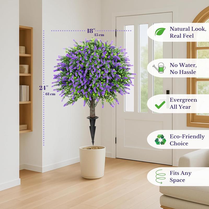 Crafted with UV-resistant materials, these topiary balls withstand sun and rain. They retain vibrant green and lavender color for up to 3 years with zero maintenance. Ideal for Christmas greenery, seasonal porch decor, and more.