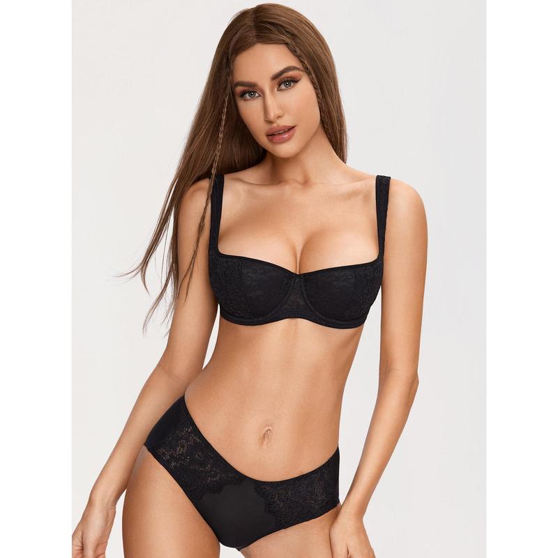 This lace balconette bra for low-cut style clothes highlights breasts, showing ample cleavage, and creating a glamorous look. Wide and adjustable straps take the stress off your shoulders and won¡¯t slip off. Underwire provides great support, striking the right balance of comfort and lift..