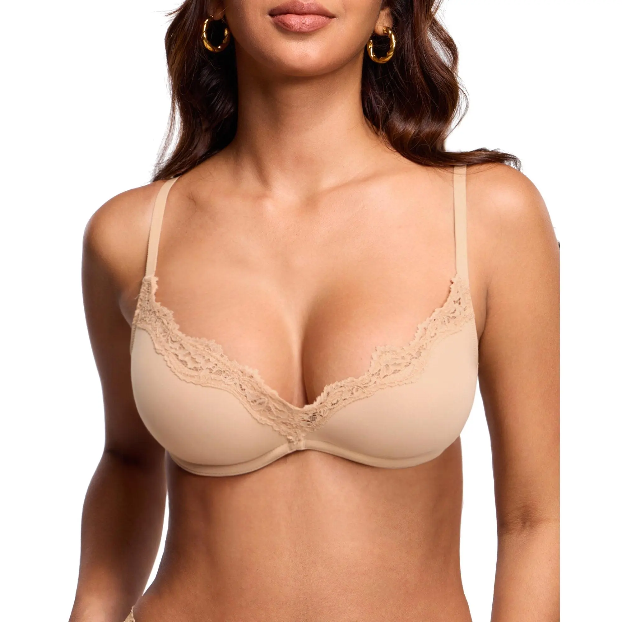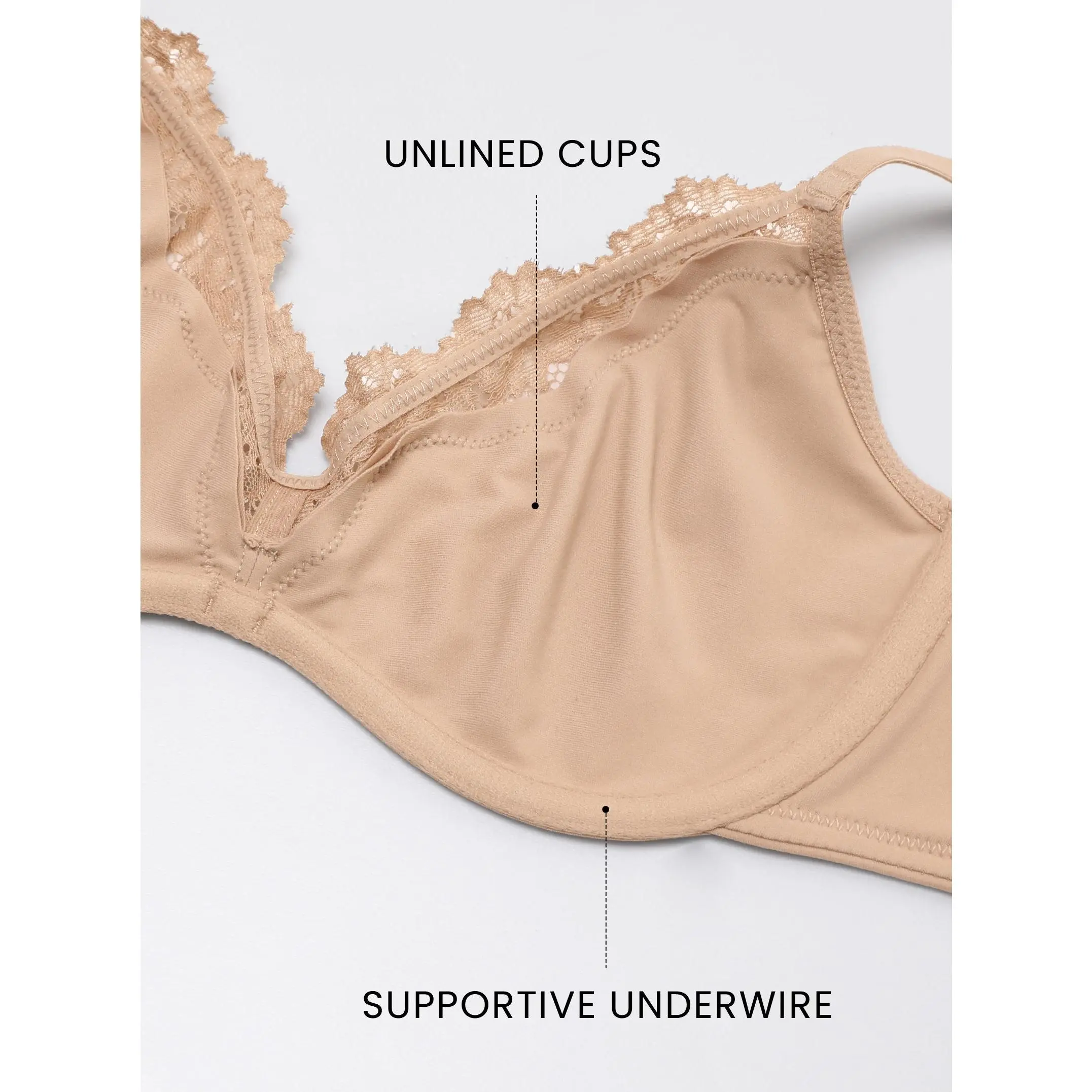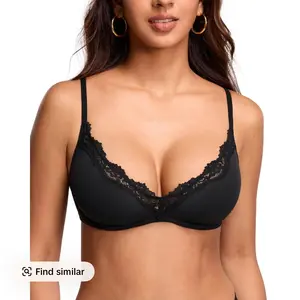 This unlined plunge scoop bra features a unique scoop neckline with delicate floral lace trim. It's cute and sexy, perfect for enhancing your tops. The soft, elastic unlined cups are breathable and comfortable, creating a natural feminine look. Ideal for those seeking both style and comfort.