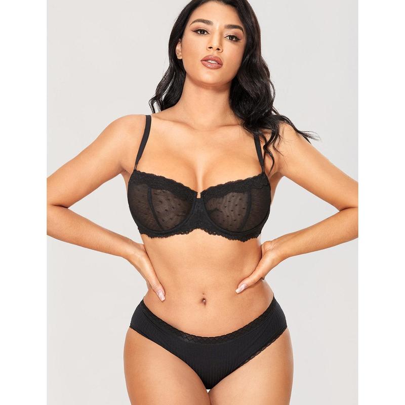 5. Women's Sexy Lace Underwire Balconette Bra Unlined Demi Sheer