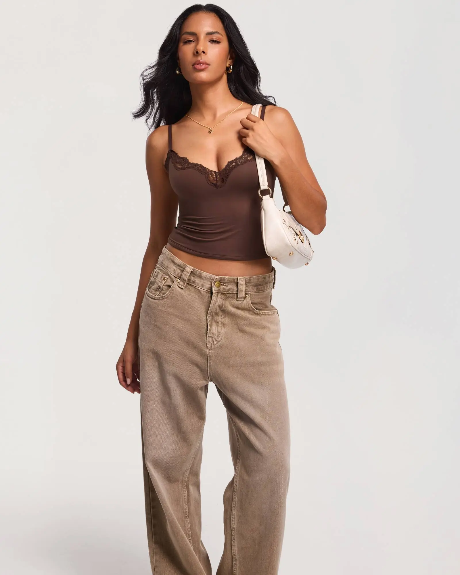 ·Lace trim deep V neckline: Amps up cleavage and adds a flirty touch.