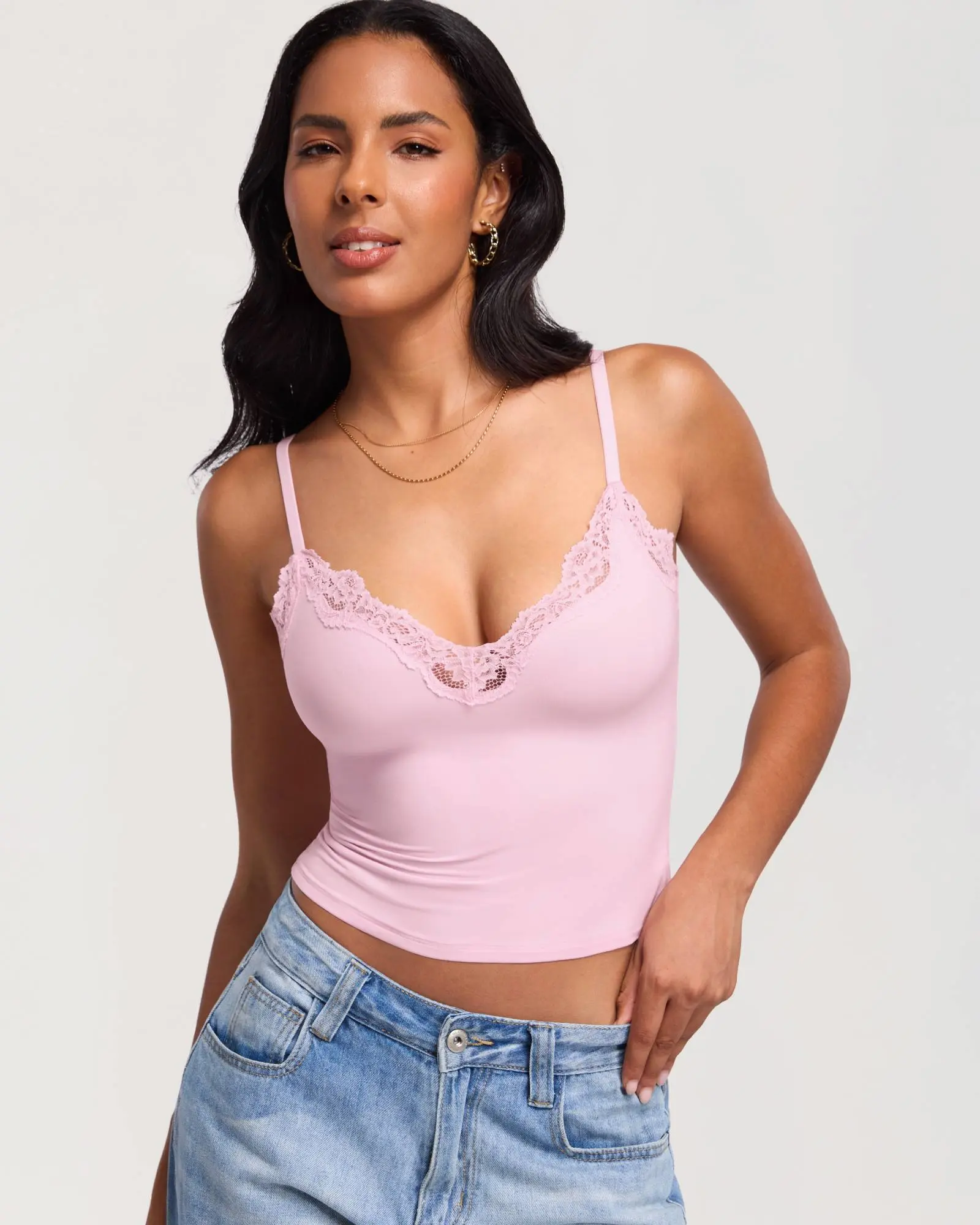 🌟 DOBREVA Women's V Neck Double Lined Camisole Tops 🌟
