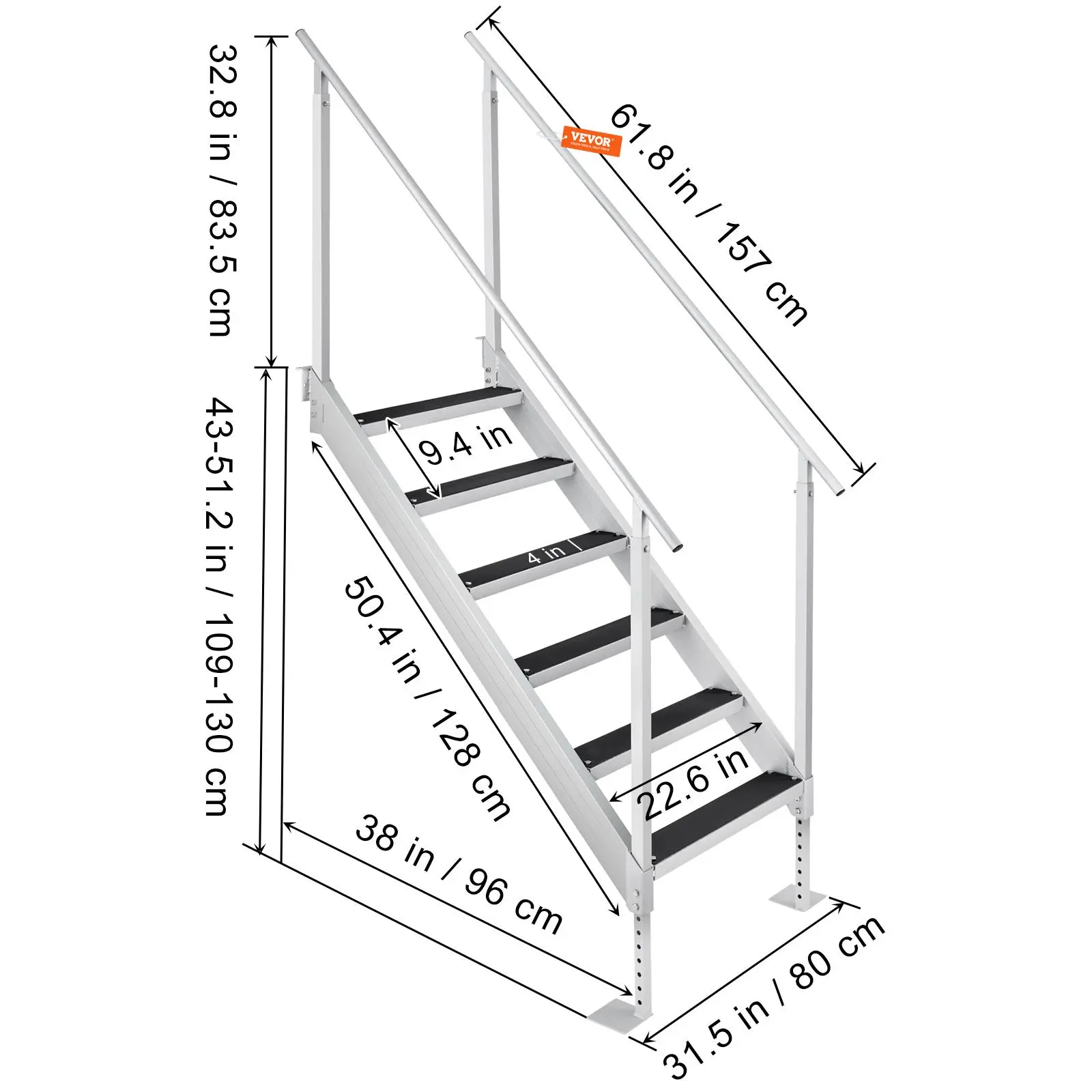 • Adjustable Height: The 43-51 inch height adjustment can meet the demands of different water depth. The feet of the ladder need to touch the bottom of the pool to provide great support.