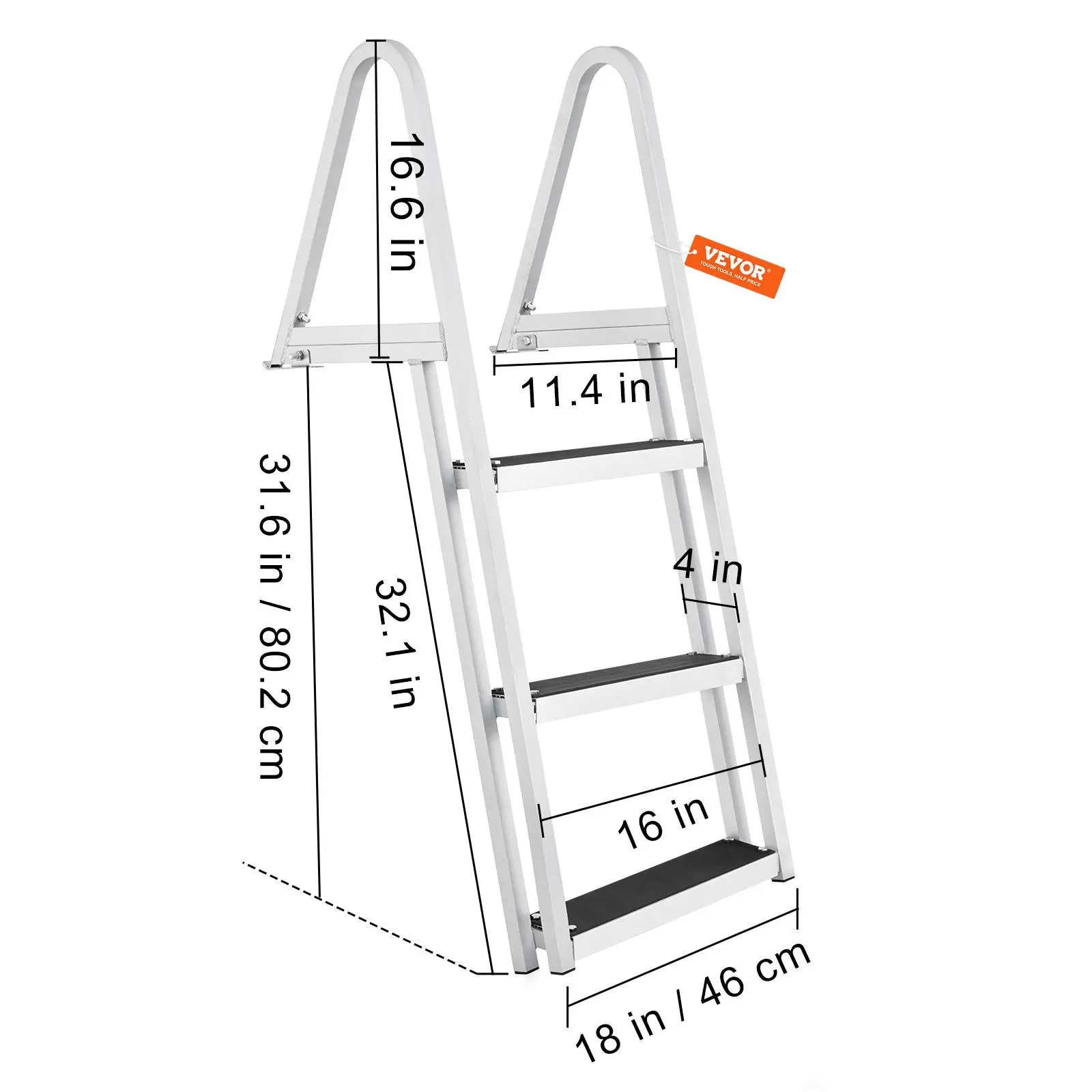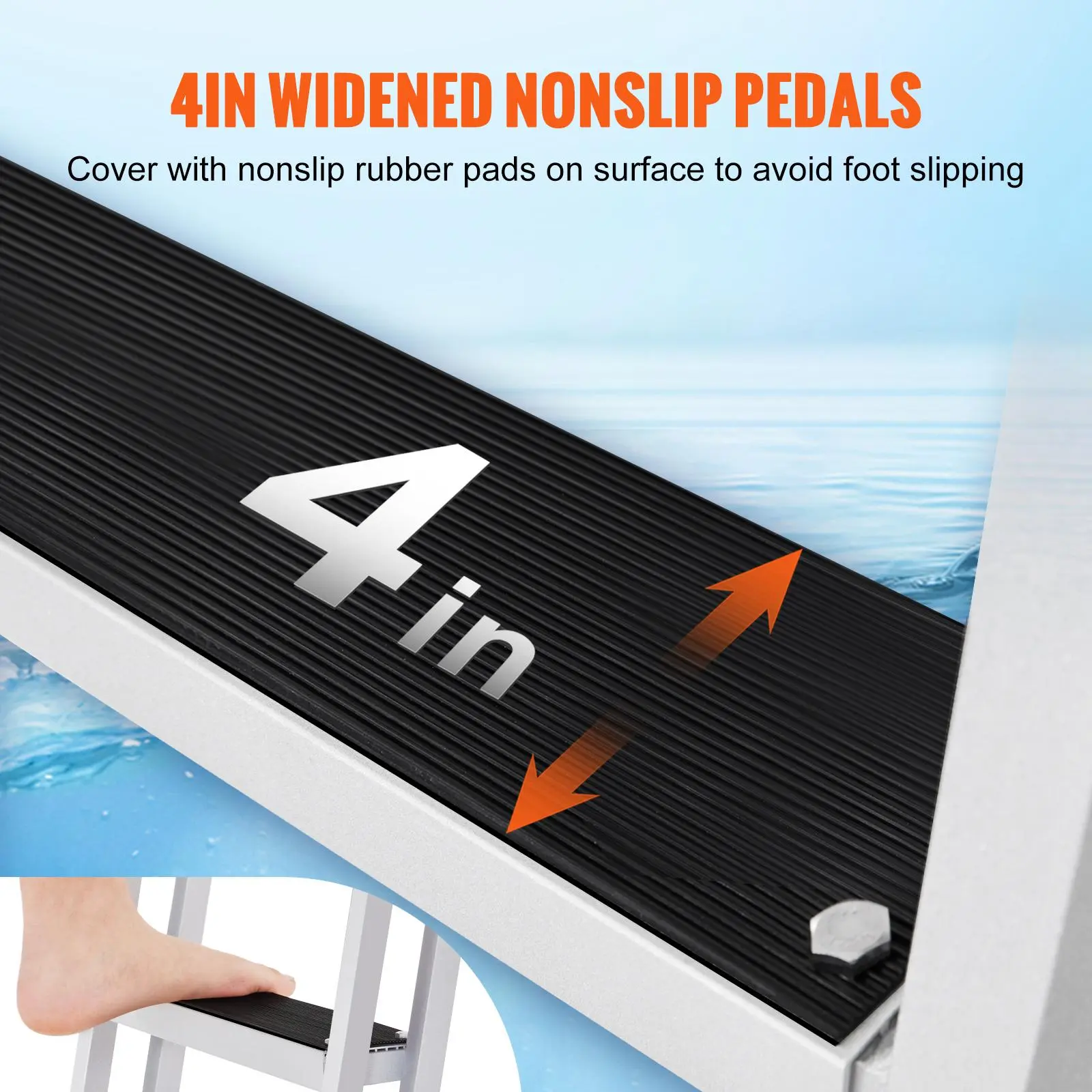 • Ergonomic Design: 12 in step distance better fits body usage habits, which is more comfortable and labor-saving for you to enter the water and go ashore. The thickened round handrails bring you comfortable holding with hands.