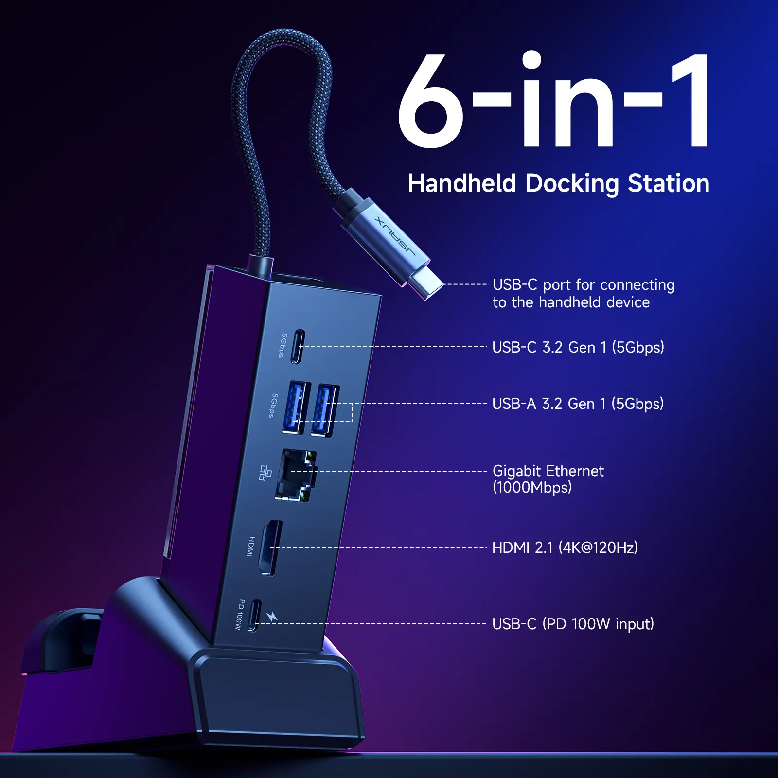 Tired of juggling cables and missing out on smooth gaming sessions? The JSAUX 6-in-1 Docking Station is here to upgrade your handheld gaming setup. Whether you’re rocking the ROG Ally X, Steam Deck, or Legion Go, this dock delivers stunning 4K visuals at 120Hz and lightning-fast 1000Mbps Ethernet for lag-free online play. Plug in your keyboard, mouse, or external drives with three USB 3.1 ports offering speedy 5Gbps transfers. Plus, the 100W Power Delivery charging keeps your device powered through marathon sessions. Designed with gamers in mind, it offers the perfect angle for handheld connections and supports popular devices like Razer Edge and AYA NEO. Customize your setup with optional cards (sold separately) to make it truly yours. Inside the box, you get the docking station ready to connect your gaming world seamlessly. Level up your play and enjoy the ultimate blend of power, speed, and flexibility. Grab your JSAUX dock today and game on with zero hassle!