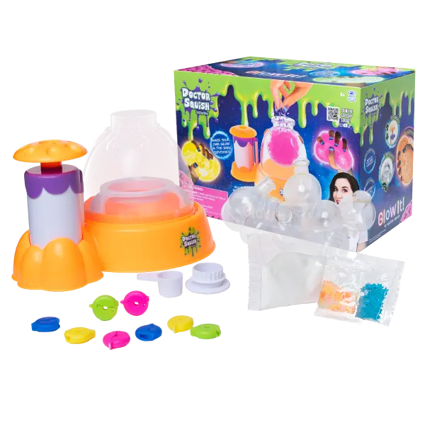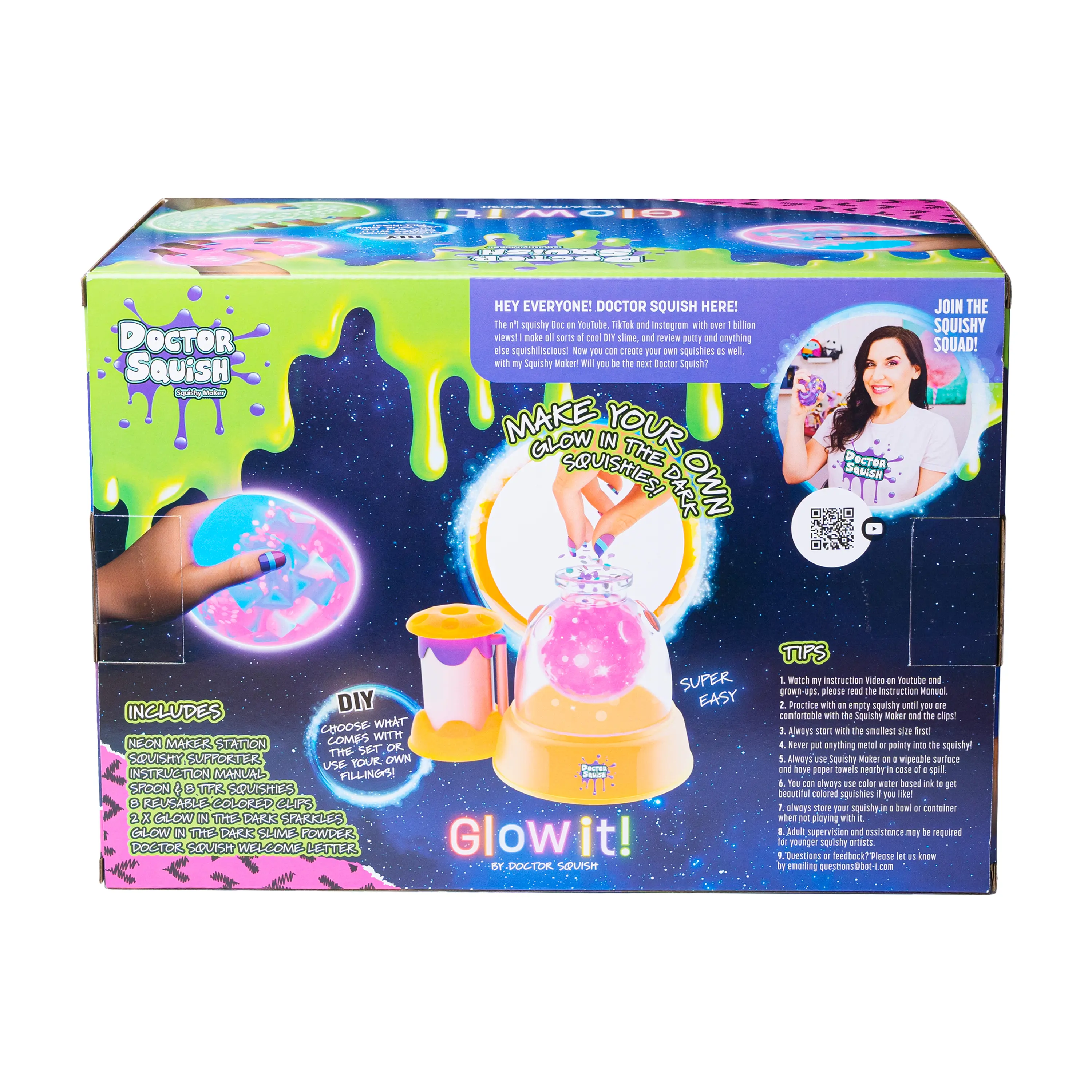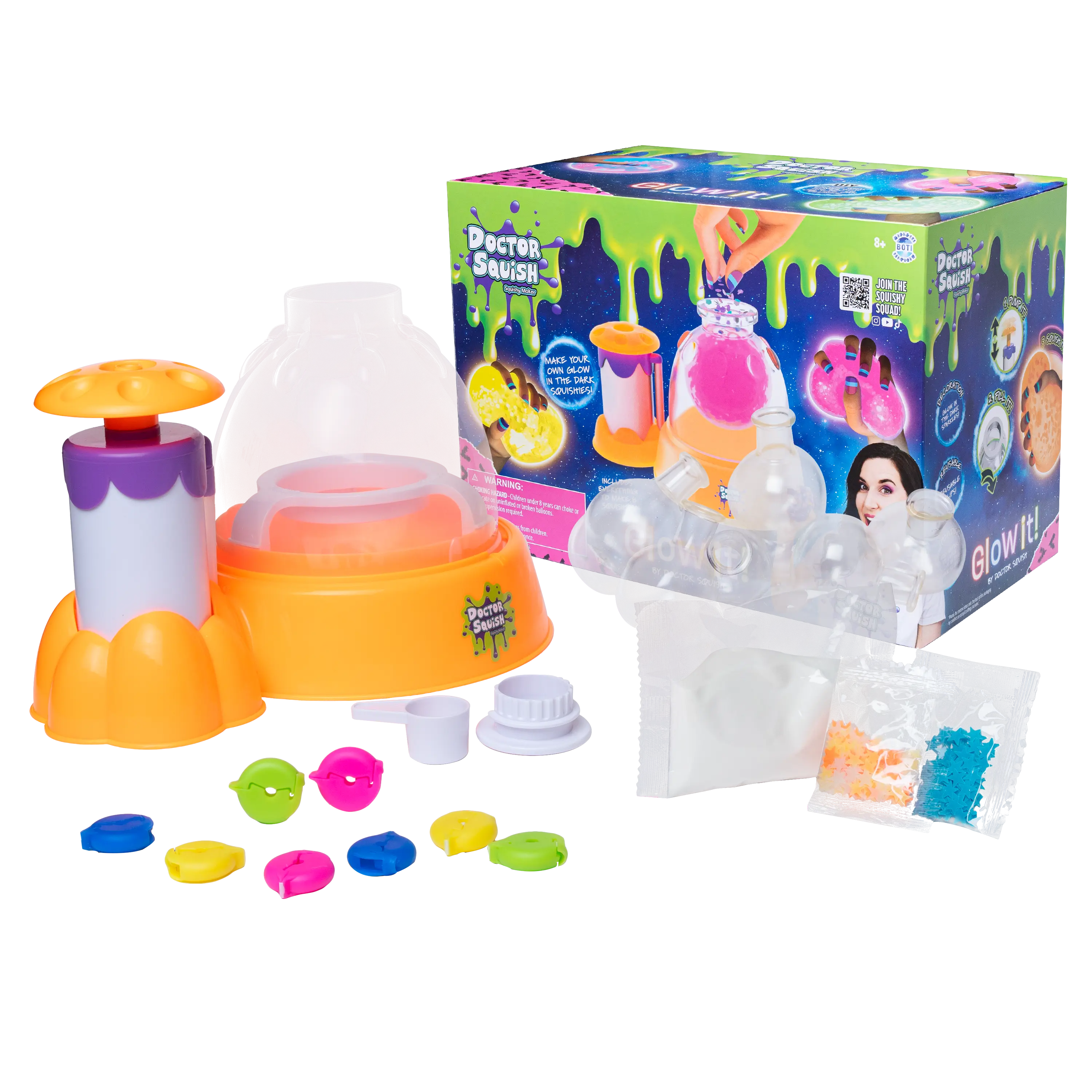 The Doctor Squish Glow-in-the-Dark Squishy Maker Kit—everything you need to create your own custom glowing squishies at home.