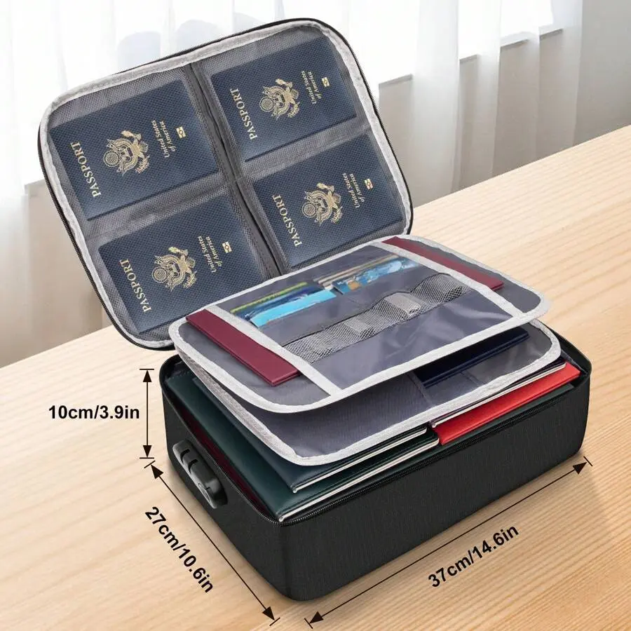 Stores important documents, files, money, passports, USB disks, cards, laptops, and certificates. Perfect companion for travel and home organization.