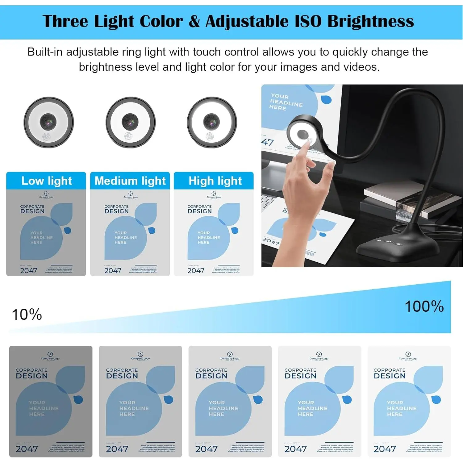 Document camera for teachers with 3-level LED light and 5-level exposure: LED light button, simple and convenient operation, 3-level brightness adjustable, can change the brightness according to the . You can also use the "☼" button to perform 5 levels of fill light, making it easy to see objects clearly in dim environments