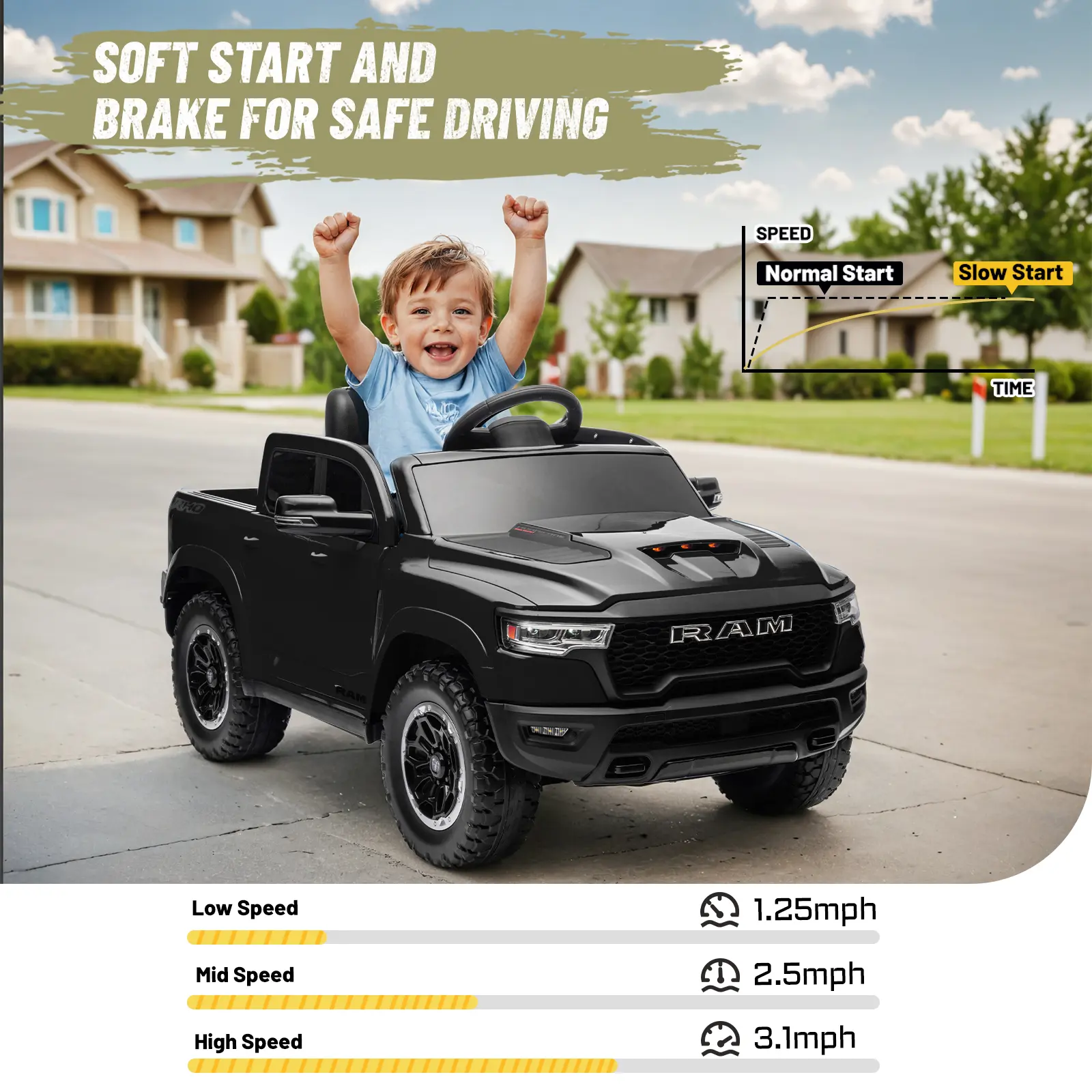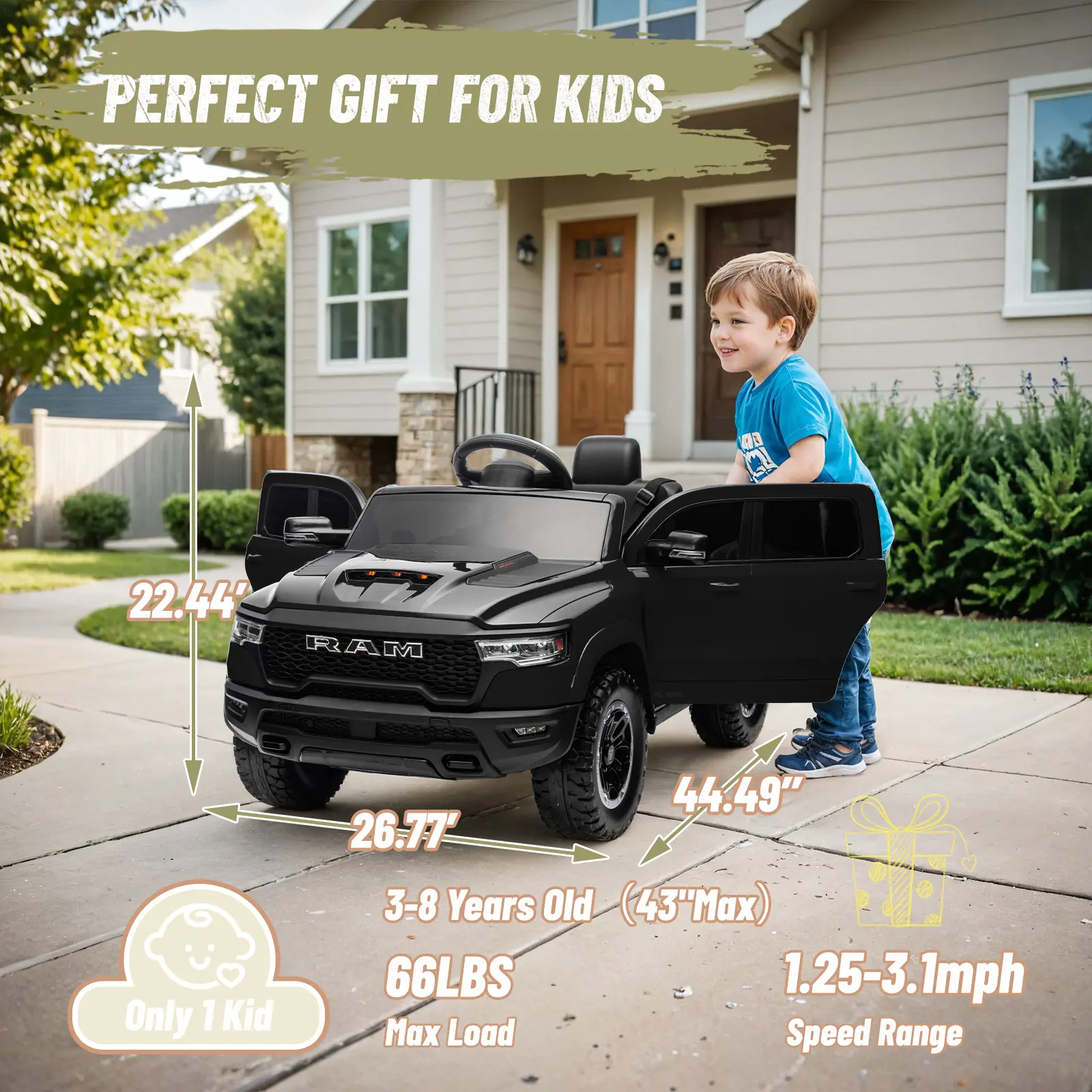 Bring home the iconic Dodge RAM 1500 for your little driver — where safety, style, and fun meet!