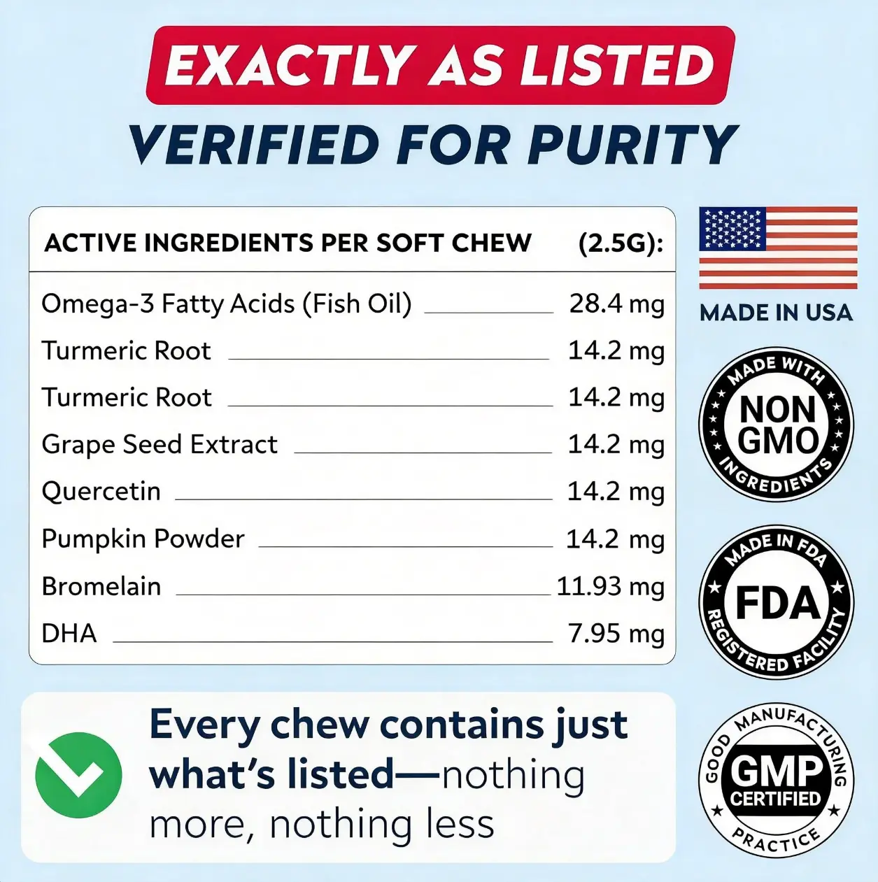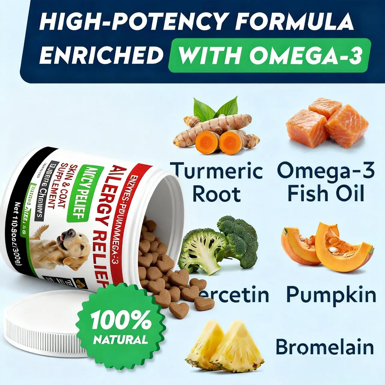 BETTER HEALTH STARTS HERE – Notice a difference in your dog's health in 2-3 weeks of consistent use. Our chews effectively combat severe allergy symptoms, supporting coat health, general immunity, and preventing hotspot & dandruff.