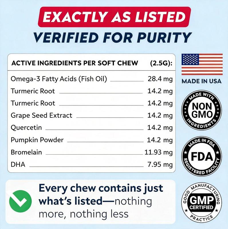 ·BETTER HEALTH STARTS HERE – Notice a difference in your dog's health in 2-3 weeks of consistent use. Our chews effectively combat severe allergy symptoms, supporting coat health, general immunity, and preventing hotspot & dandruff.