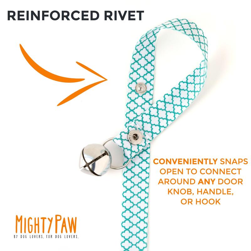 Bid farewell to scratching, barking, and whining when it's potty time with the Mighty Paw Tinkle Bells 2.0 Dog Potty Bell. This updated version offers the same great functionality with four stylish fabric patterns. The bells are made from high-quality metals that deliver clear, crisp sounds while resisting stress from even the most playful dogs.