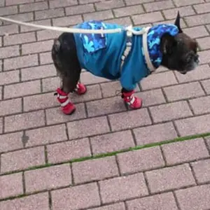 Il mio bulldog camina benissimo e non lo voglio togliere.qualita della scarpa meravigliosa tutto uguale in foto.