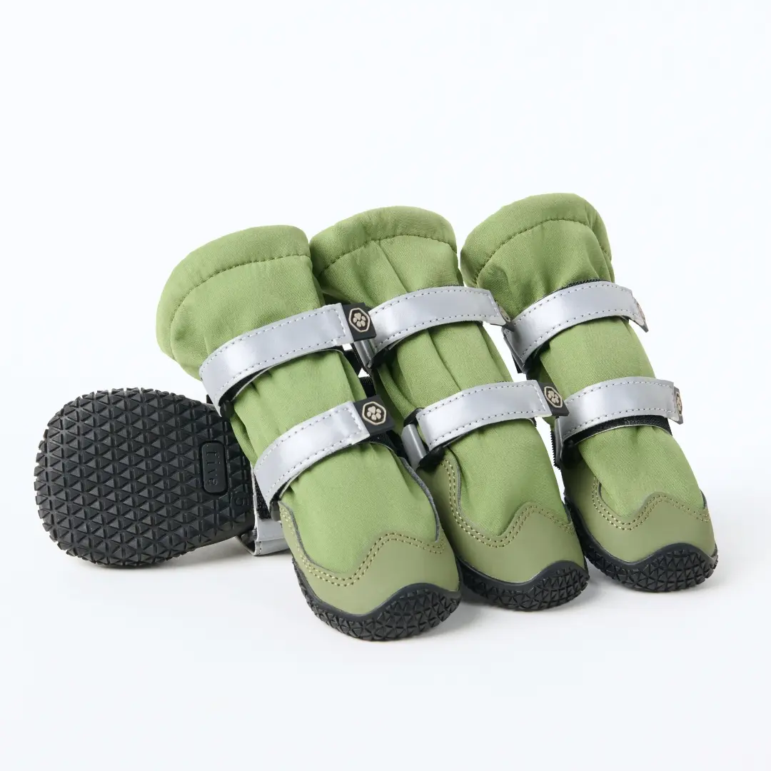 These are so great! We live in a filthy city, travel to the desert as well as the snowy mountains and I’ve been looking for a boot that fits all of these needs. These boots are super easy to put on and after a little bit of trial, they stay on! (They need to be pulled pretty tight to stay) they kept my dogs feet from getting sharp prickles in them in the desert and they kept them clean at the muddy park. I haven’t tried them in the snow yet, but I’m sure they’ll do the trick. My only issue is that a part of the soul has started coming away from the shoe in my big dogs boot, but I’m just gonna put a little superglue on it and I think it’ll be fine.