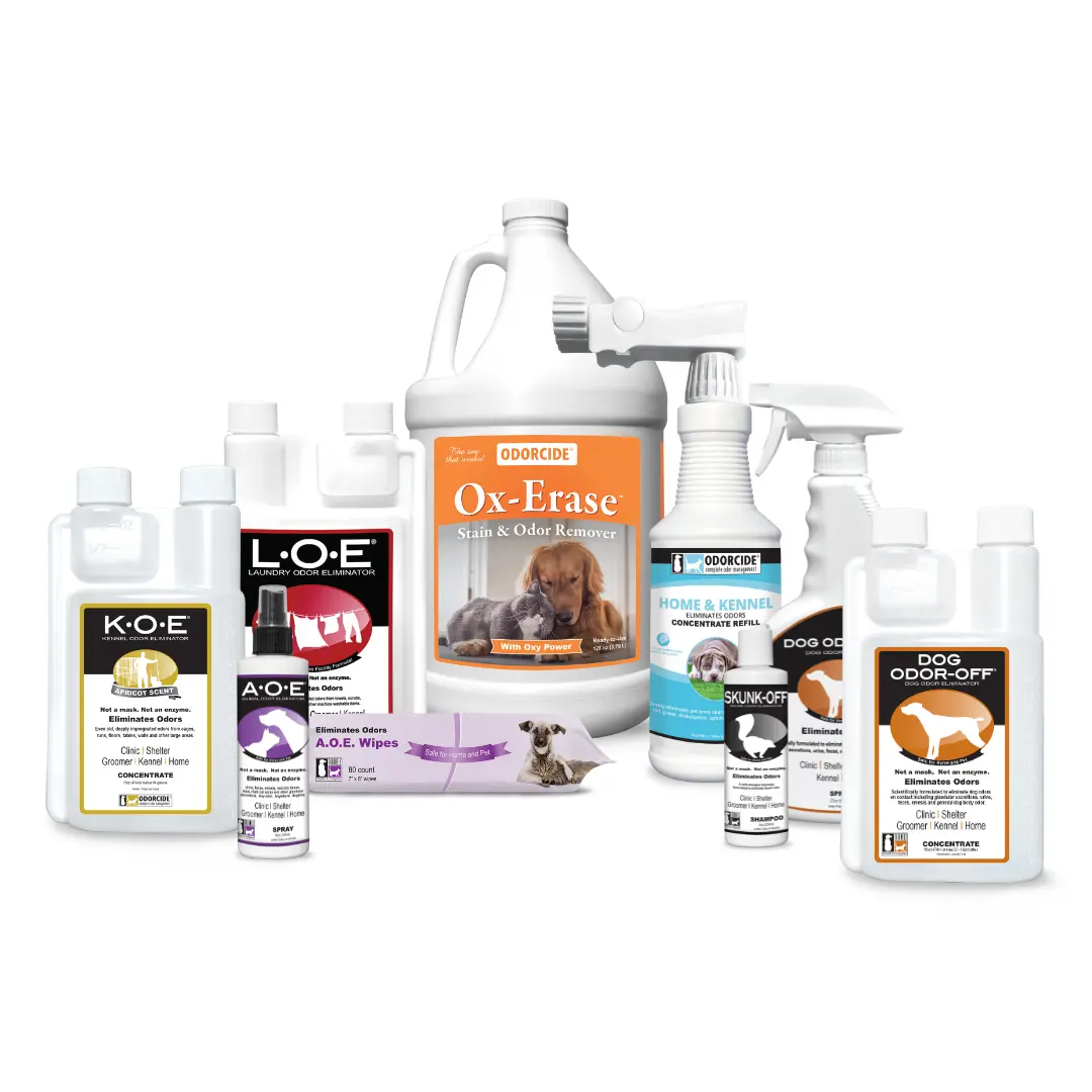 Dog Bundle 9 Piece - Apricot K.O.E. 16oz Concentrate, A.O.E. Wipes 80ct, A.O.E. 8oz Spray, L.O.E. 32oz Concentrate, Ox-Erase Stain & Odor Remover Gal