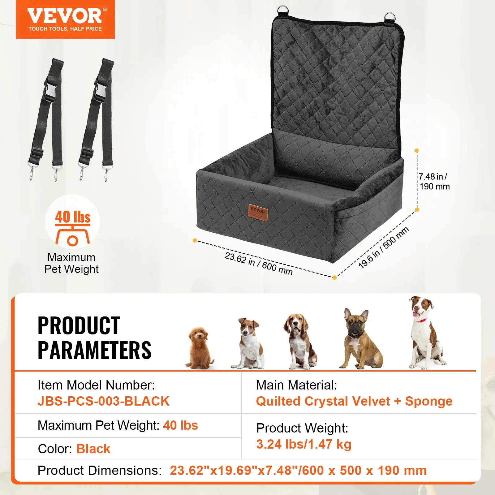• Convenient & Practical Design: The pet car seat features a large side storage pocket for pet essentials, an extended backrest for added safety during braking. The removable pad with a waterproof layer on the bottom, preventing pet waste from seeping through and making cleaning easy.