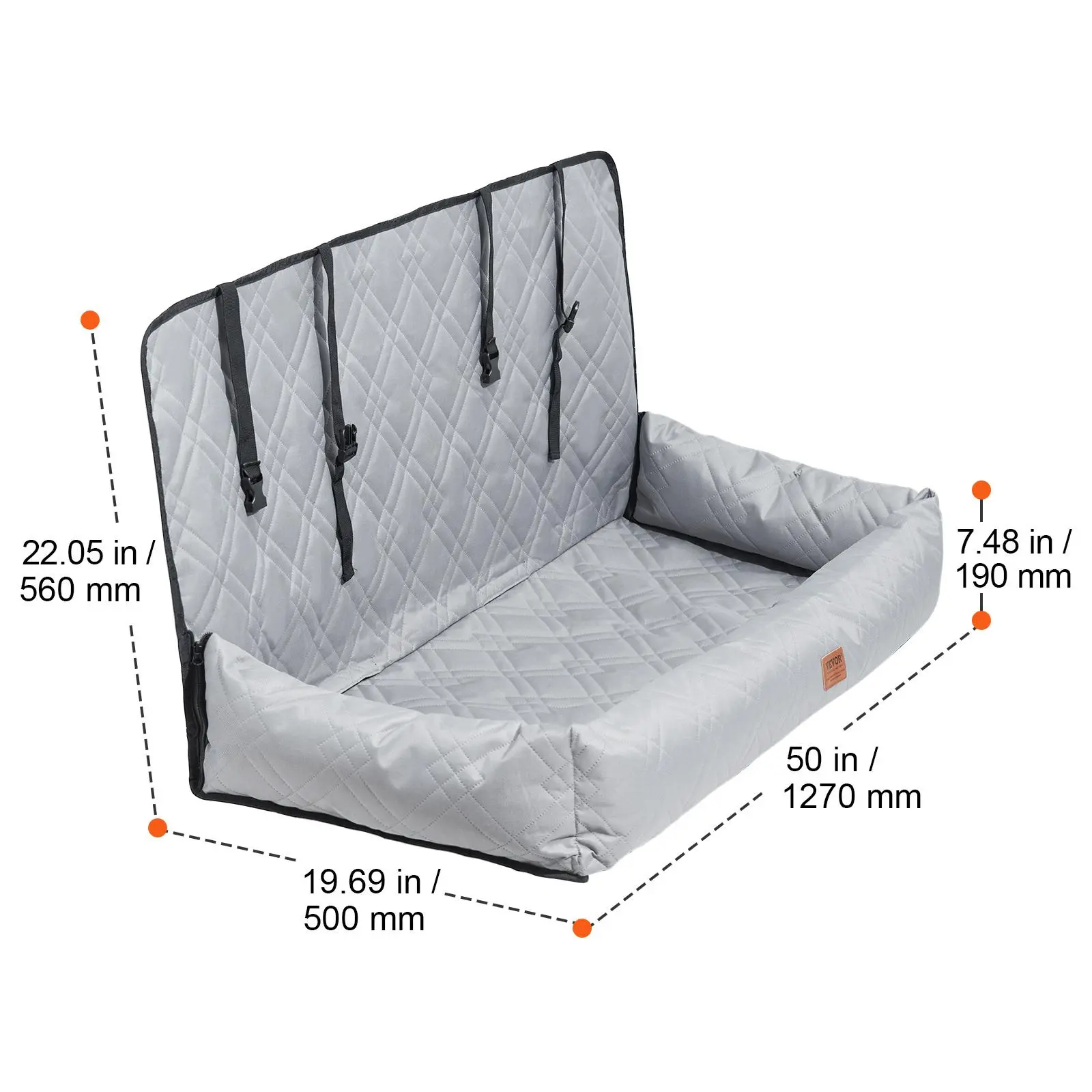 5. VEVOR Dog Car Seat, Waterproof Dog Booster Seat for Car, Pet Car Seat with Clip-On Safety Leash, PP Cotton Filling, Dog Car Bed for Medium & Large Dog up to 100 lbs, Gray