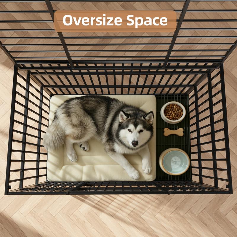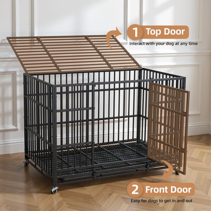 【Flexible Movement】: Come with four high-quality 360° rolling casters, this heavy duty dog kennel can move effortlessly to any place—easier than traditional dog cages. All wheels can be locked to prevent anxious dogs from escaping or harming themselves.