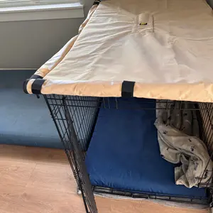Moved into hotel thanx to FEMA and the destruction of our home from hurricane Helene. Had to find a new everything for Daisy, our pet Boxer...cage, bedding, food & water dish. Couldn't think of any place but K9. Daisy likes the privacy and the external noise dampening that the cover provides for her cage; we're near the side exit and people take the shortcut to the parking lot causing the outside door to slam. We leave the cage door open during the night and every time during the day when she's not on the couch she's chilling in her bed. Thanx K9