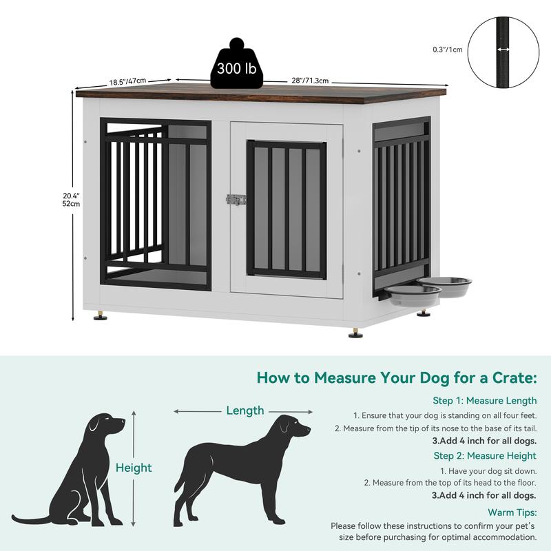 【Recommended Size】The internal dimensions of the wooden dog kennel side table are 26"x16.6"x17.8", suitable for medium-sized dogs weighing 30 pounds or less. Choosing the right cage size is essential to ensure the safety and comfort of your dog.