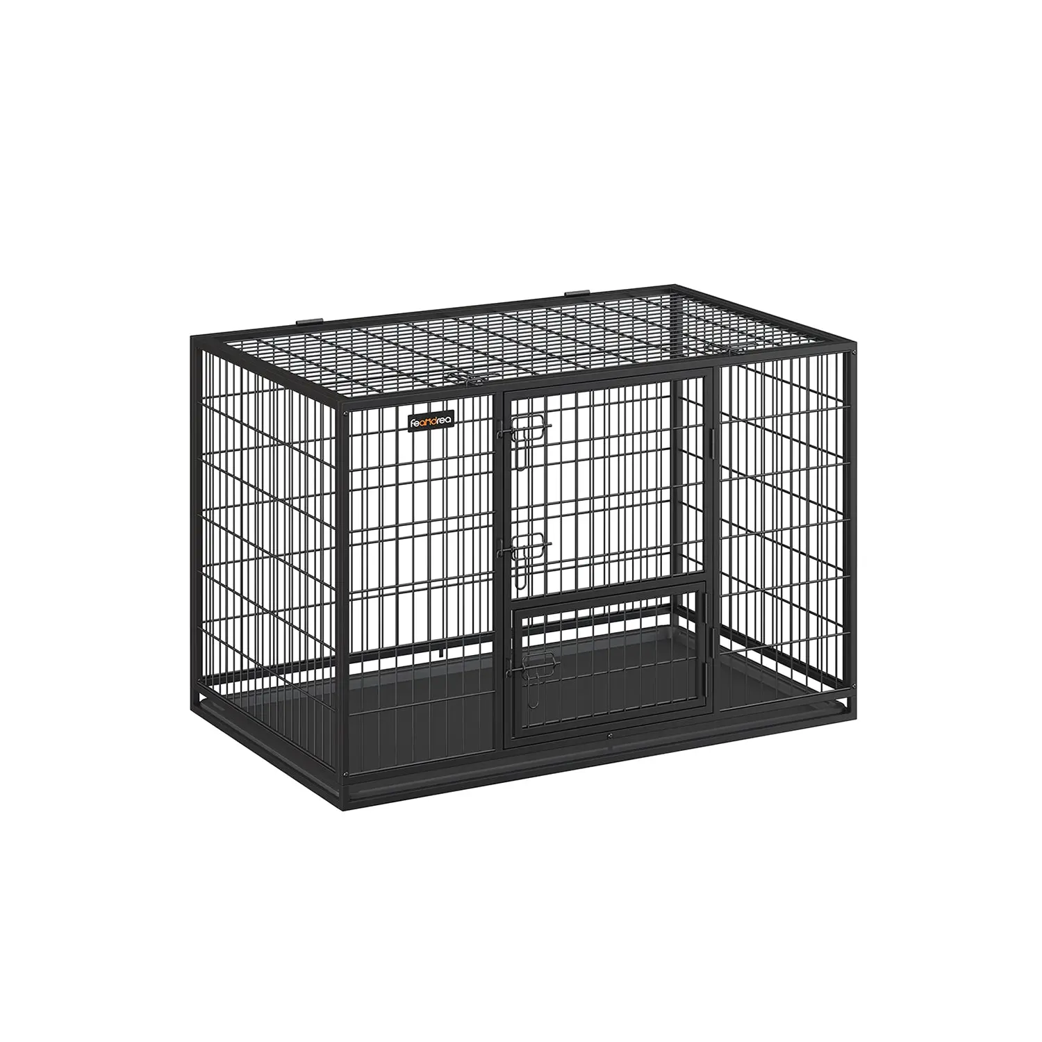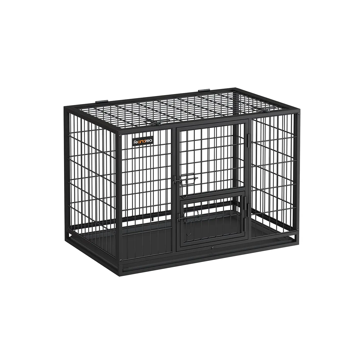 Feandrea Heavy-Duty Dog Crate, Dog Kennel, 42.1 x 27.6 x 29.5 Inches, for Large and Medium Dogs, Anti-Escape, Double Removable Door, Easy Cleaning, Pet Cage, XL, Black
