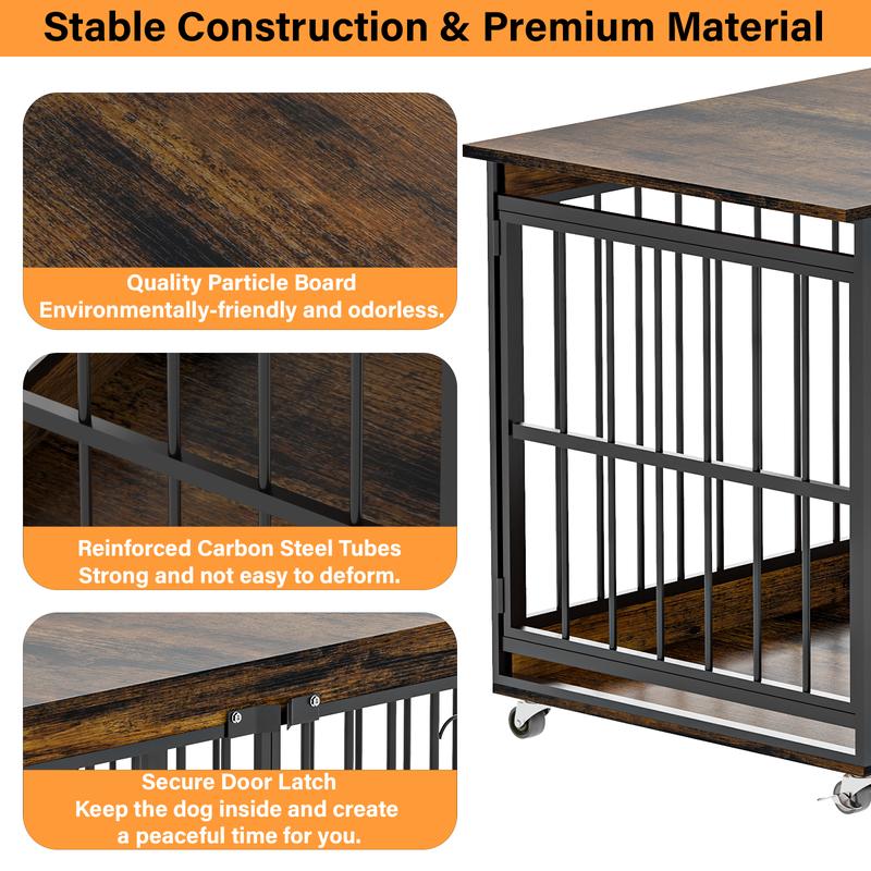【Functional Features】Our dog kennel furniture comes with 4 smooth rolling caster wheels, making it easy to clean and move around your home. Two locking wheels ensure stability when needed.