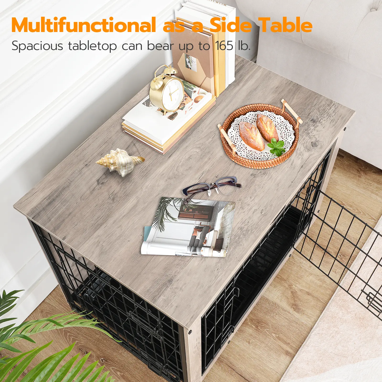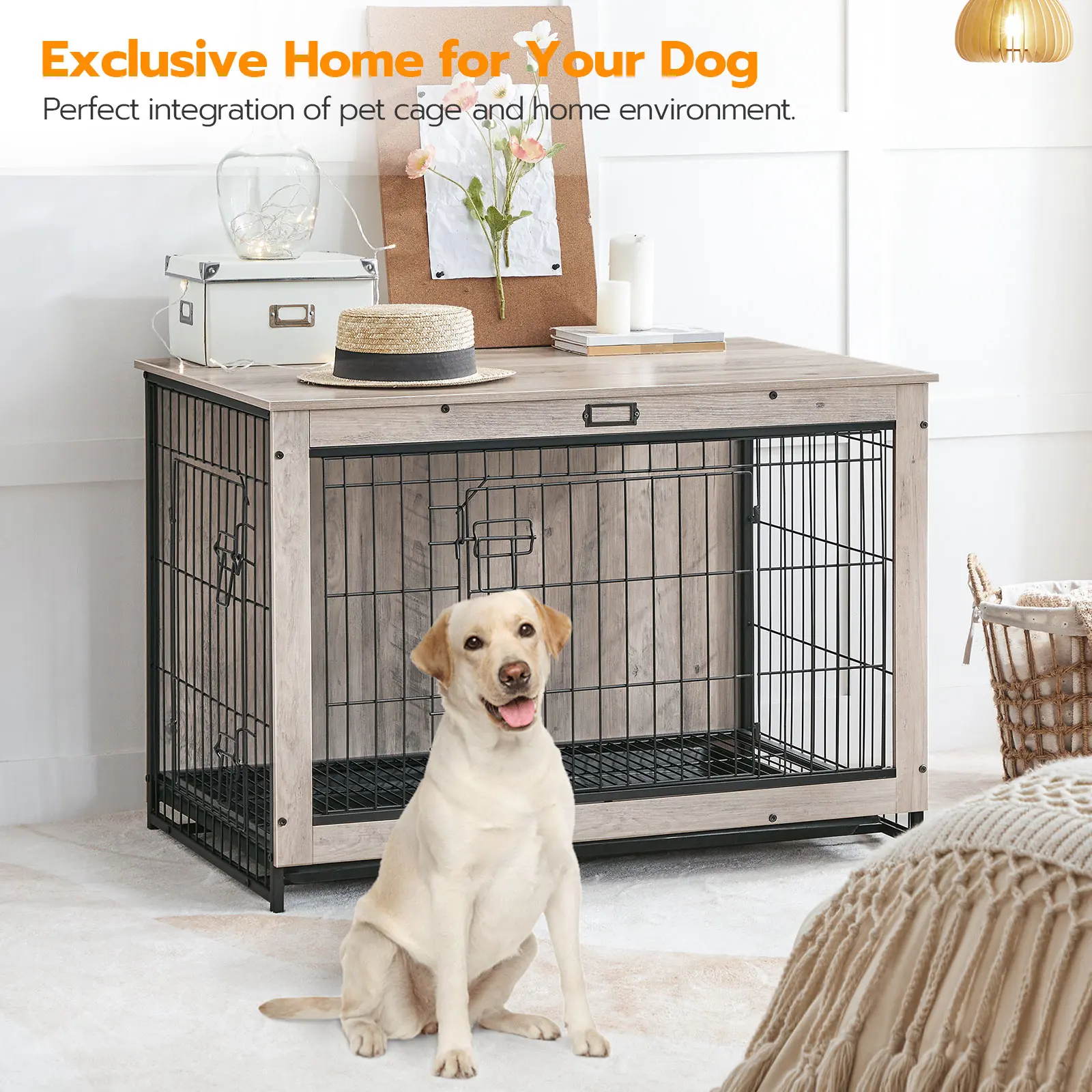 Modern rustic look makes this pet cage compatible with your home.