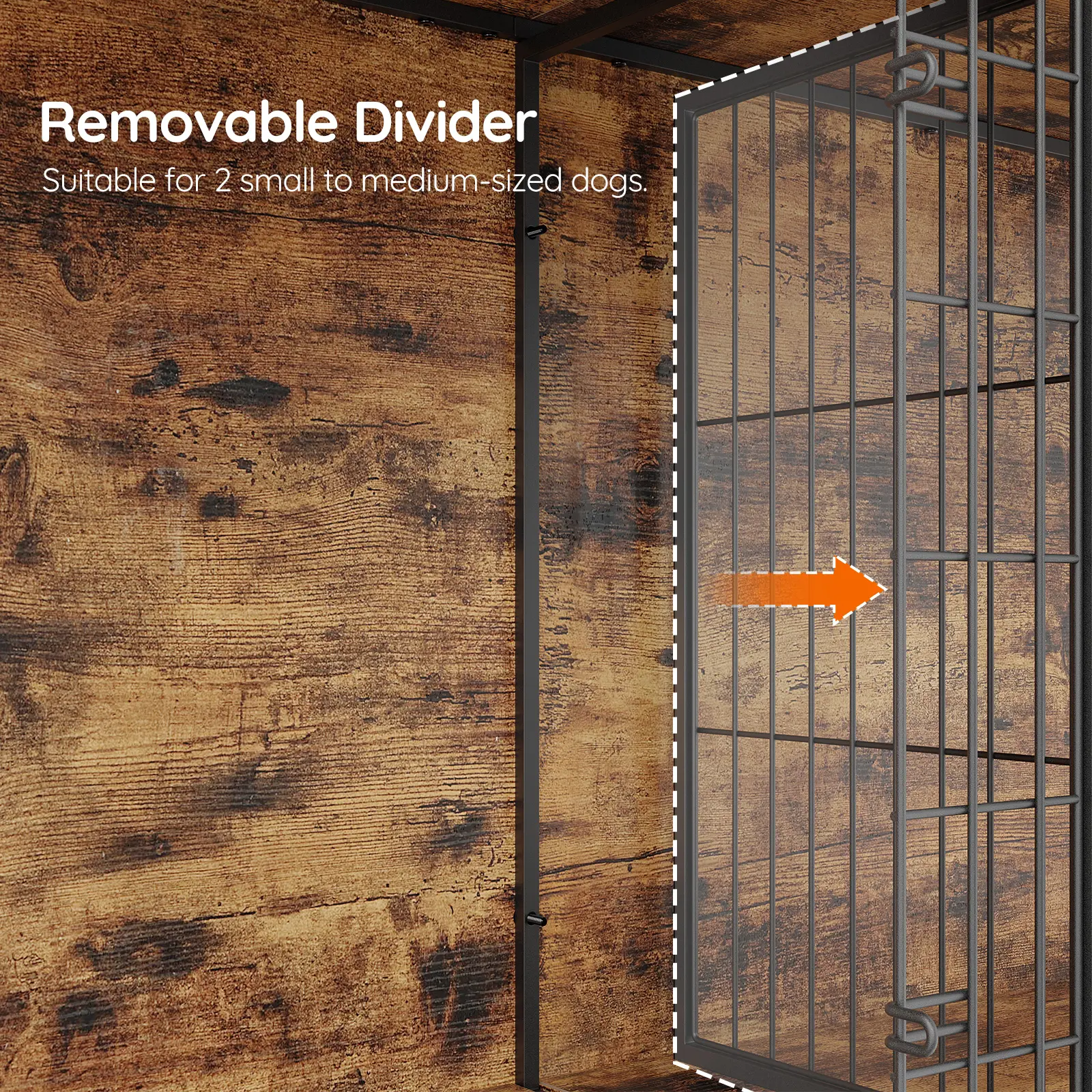 The middle metal mesh of this dog crate is removable, allowing 2 separate dog kennels to be connected into a spacious, large dog crate, suitable for accommodating 2 small to medium-sized dogs, meeting your pets' diverse needs.