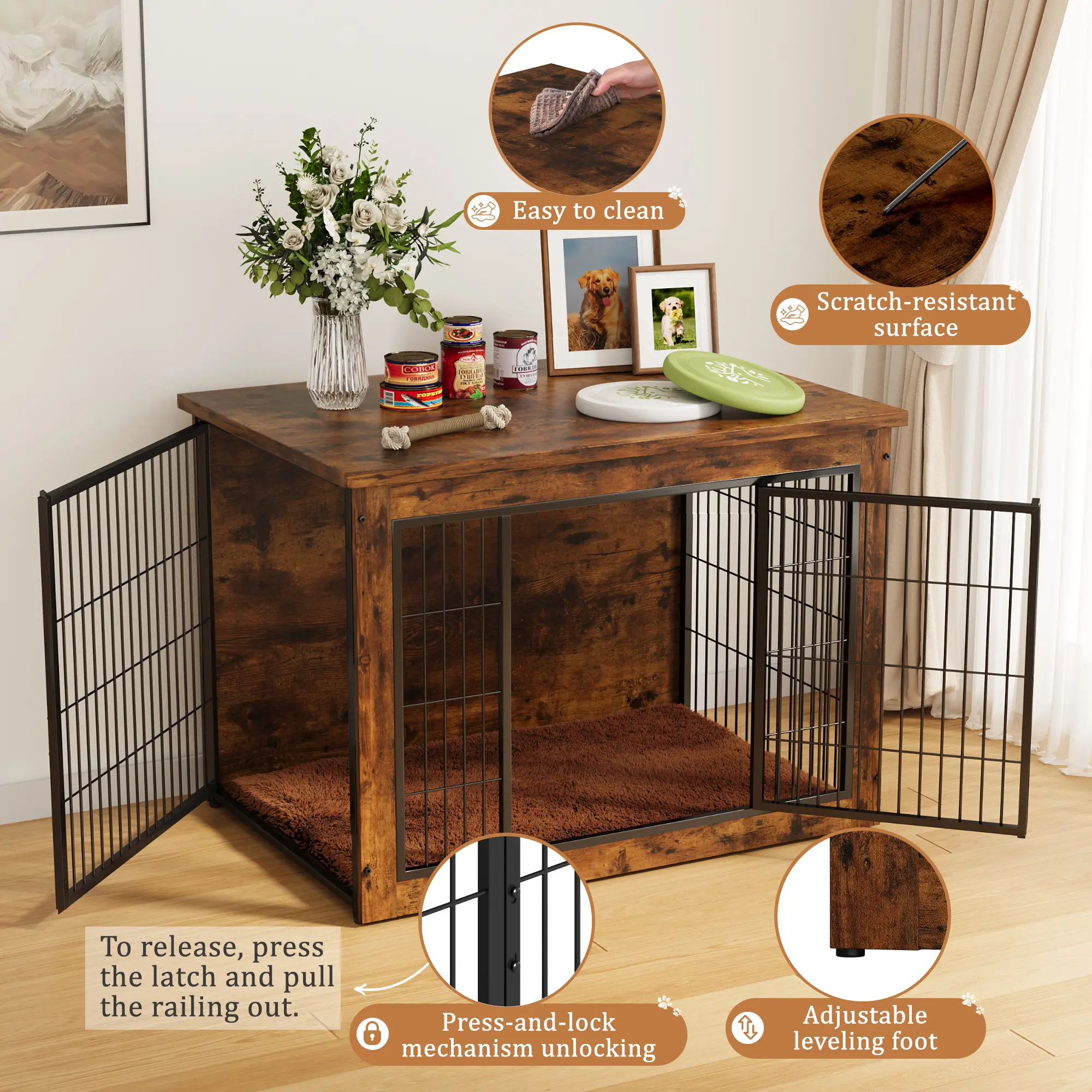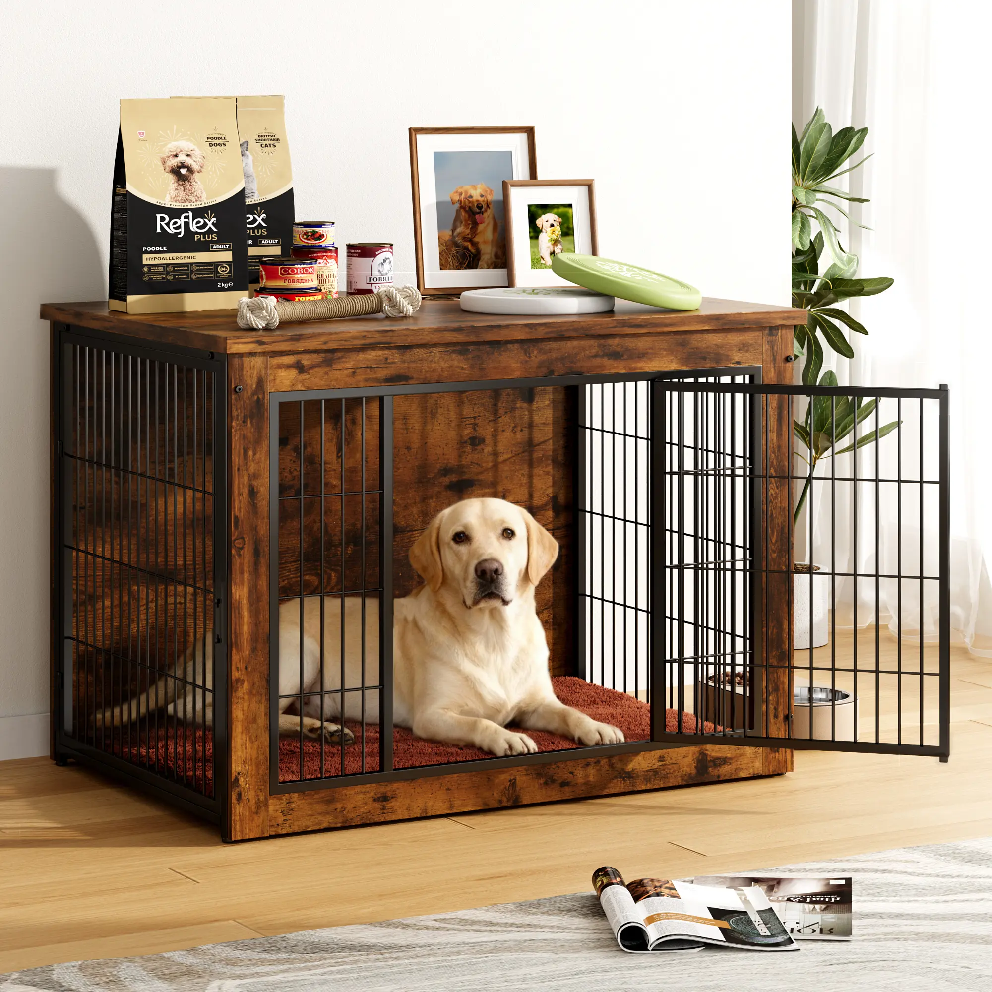 ·[Multi-Functional Design] Serves as furniture to hide clutter, a cozy dog crate with a matching cushion, or a plant stand to decorate your home—versatile for various needs.