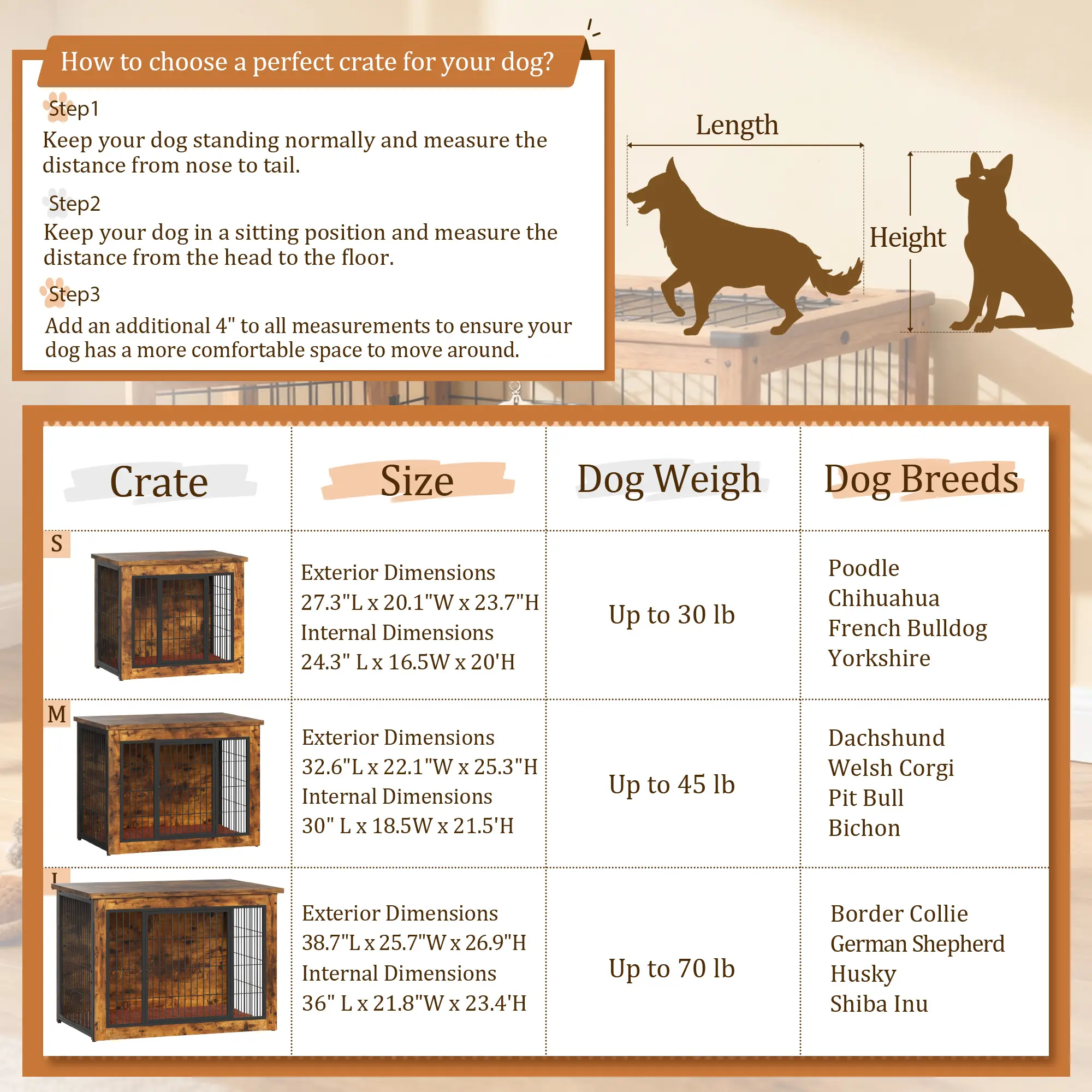·[Fits Small to Large Dogs] Spacious interior accommodates daily activities—measure your dog’s height and length to ensure a comfortable fit.