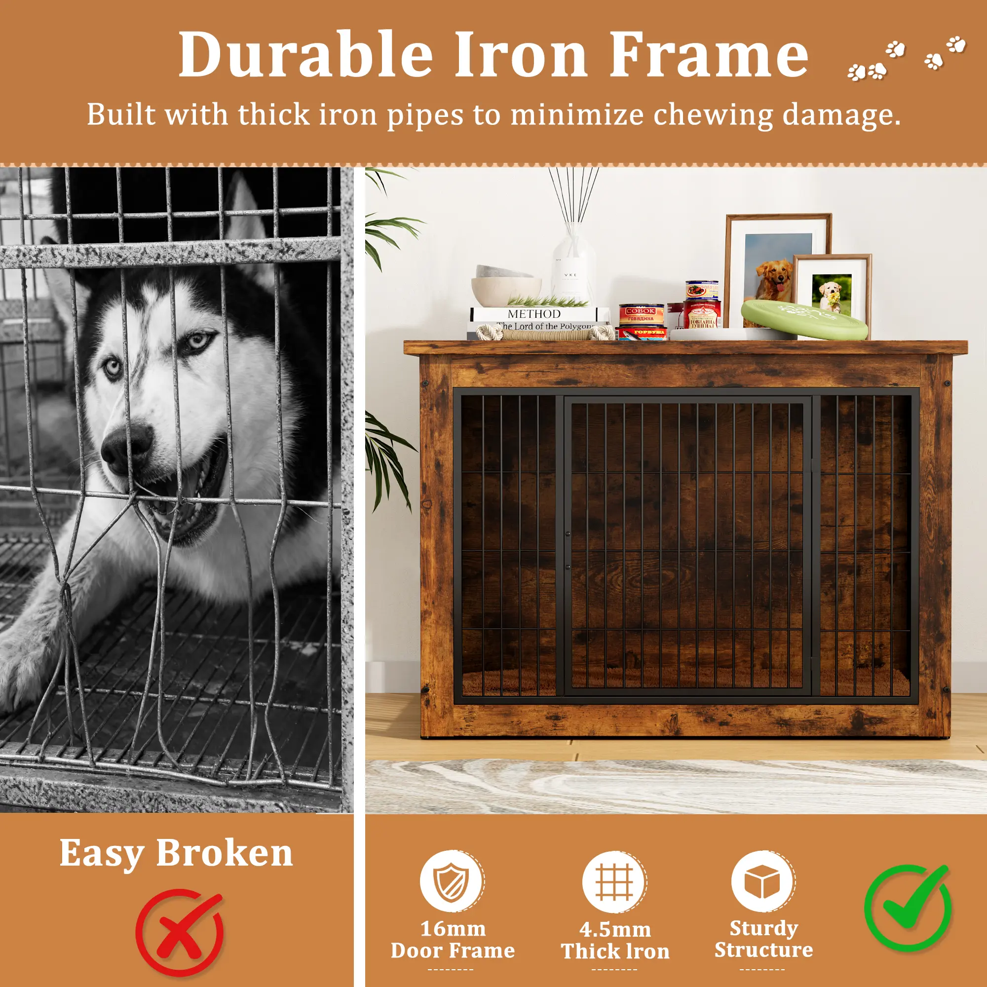 ·[Heavy-Duty Construction] Sturdy top panel holds up to 200 lbs, with 4mm steel rods and 16mm square frames for high strength, hardness, and chew resistance.