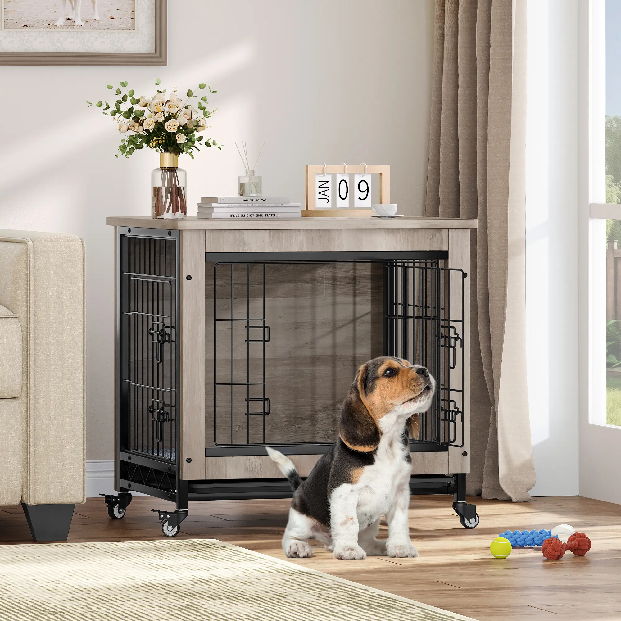 Multipurpose Furniture Piece: This small dog crate can double as an end table, side table, or nightstand that’s ideal for small spaces and stylish interiors; Its top surface can hold decorative items or potted plants, adding both practicality and aesthetics to your home