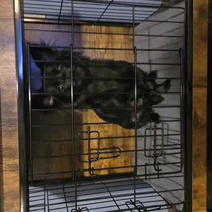 Comfortable & Clean: The included comfy cushion in the dog crate offers your pet a warm and relaxing area to rest and sleep; The pull-out tray makes it easy to clean up any mess, keeping the dog kennel and your room tidy and odorless