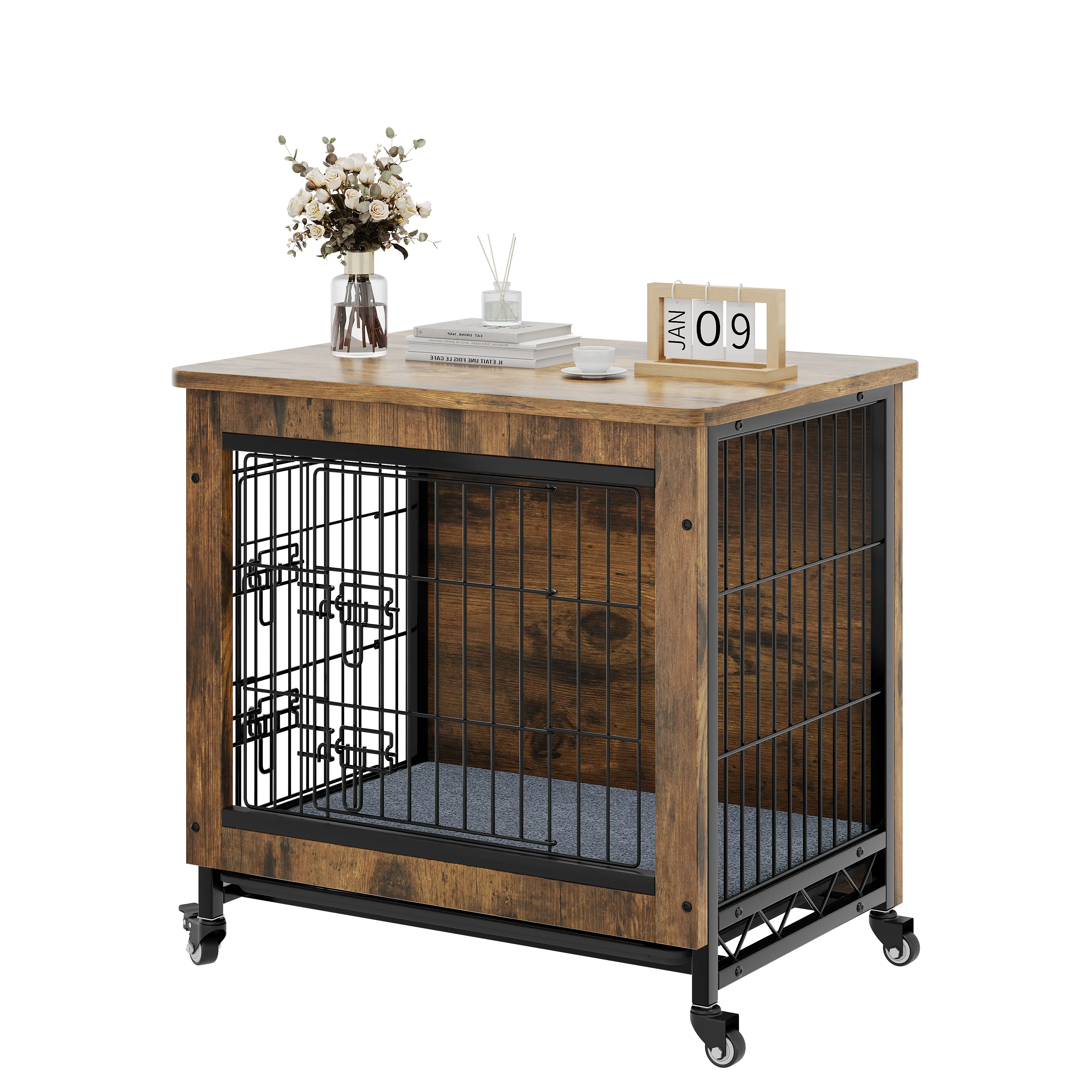 Strong Bite-Proof Structure: Crafted with a blend of iron and wood, this dog house furniture offers excellent bite resistance compared to standard iron cages; The iron frame is highly durable while the wooden accents add a touch of elegance to your home decor