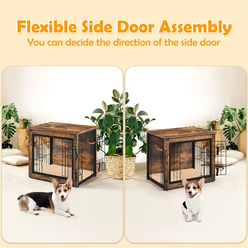 ·【Double-door For Easy Entry】 This dog crate is designed with two latched doors for both convenience and enhanced safety. What's even better is that you can choose the direction of the side door according to your furniture arrangement needs