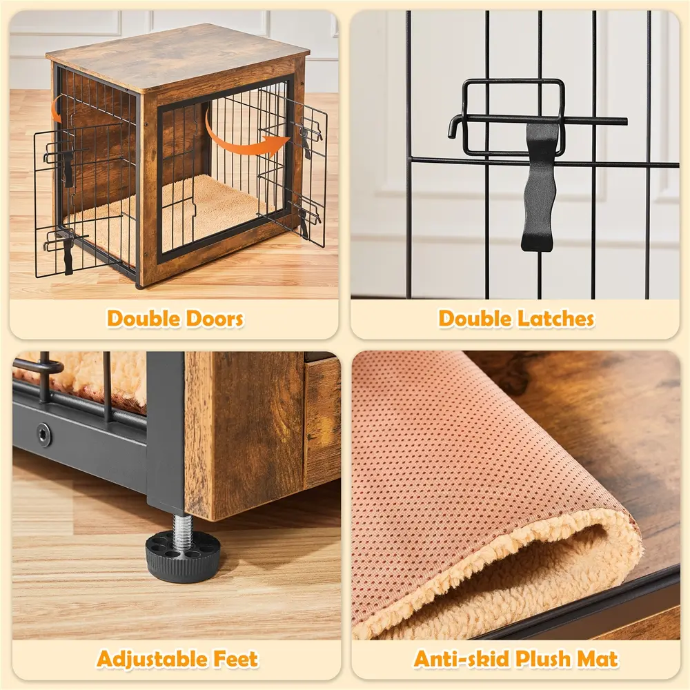 ·【Sturdy Metal-wood Construction】 This dog crate furniture is made with powder-coated metal wires and CARB P2-compliant MDF, ensuring both safety and durability.