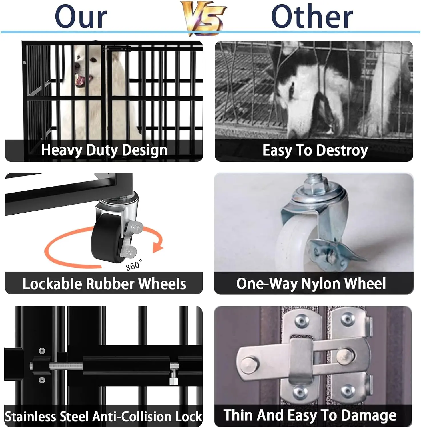 Ā·ćGreat Heavy Duty Dog Crate For The MoneyćThis dog cage is specially designed for German Shepherd, Golden retriever, Labrador and other large dogs.If you have any problems with your dog cage during the year, you can always contact us and we will be responsible for your lovely dog.